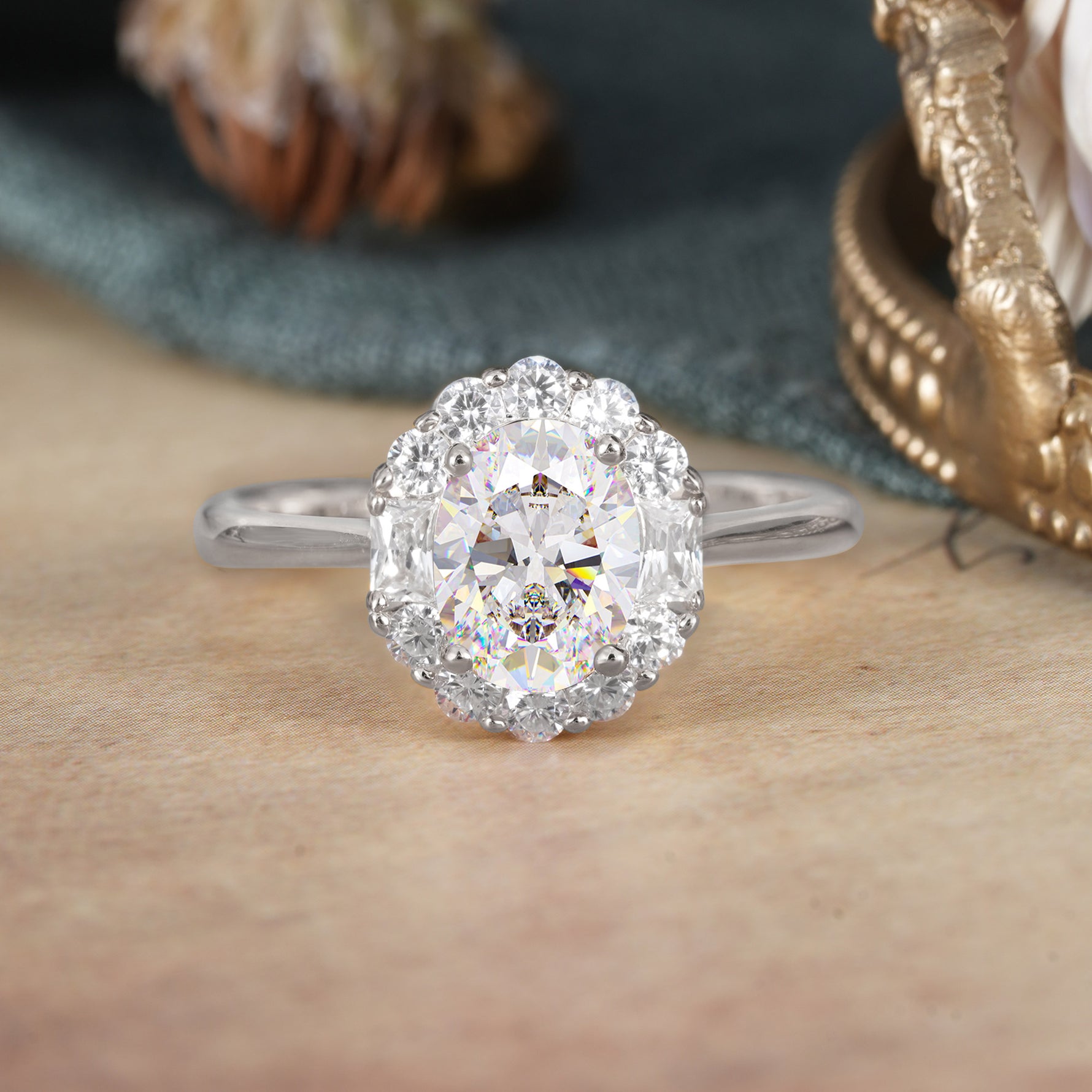 1.5 Carat Classic Halo Lab Grown Moissanite Ring Oval Shaped Engagement Ring