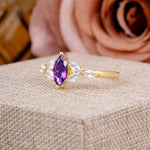 Classic Marquise Cut Amethyst Engagement Ring Sider with 3-stone