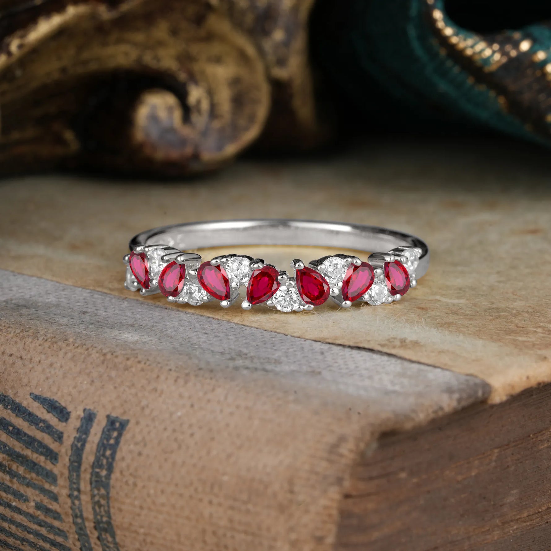 Pear Cut Classic Ruby Half Eternity Wedding Band Anniversary Ring