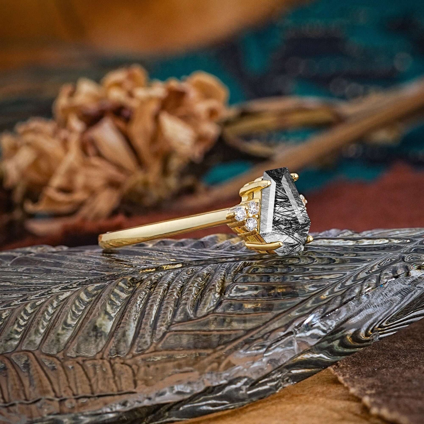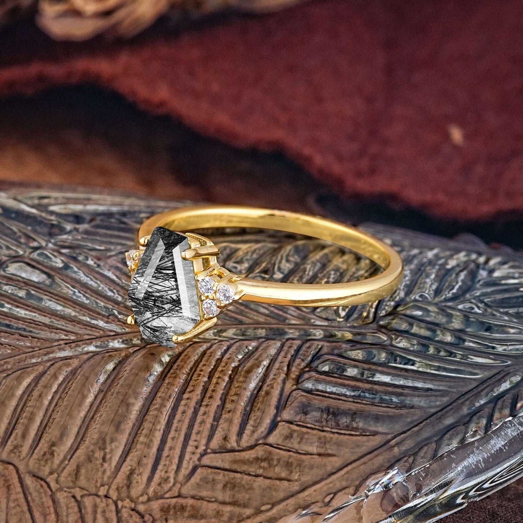 Minimalist 4-Prong Coffin-Cut Black Rutilated Quartz Engagement Ring