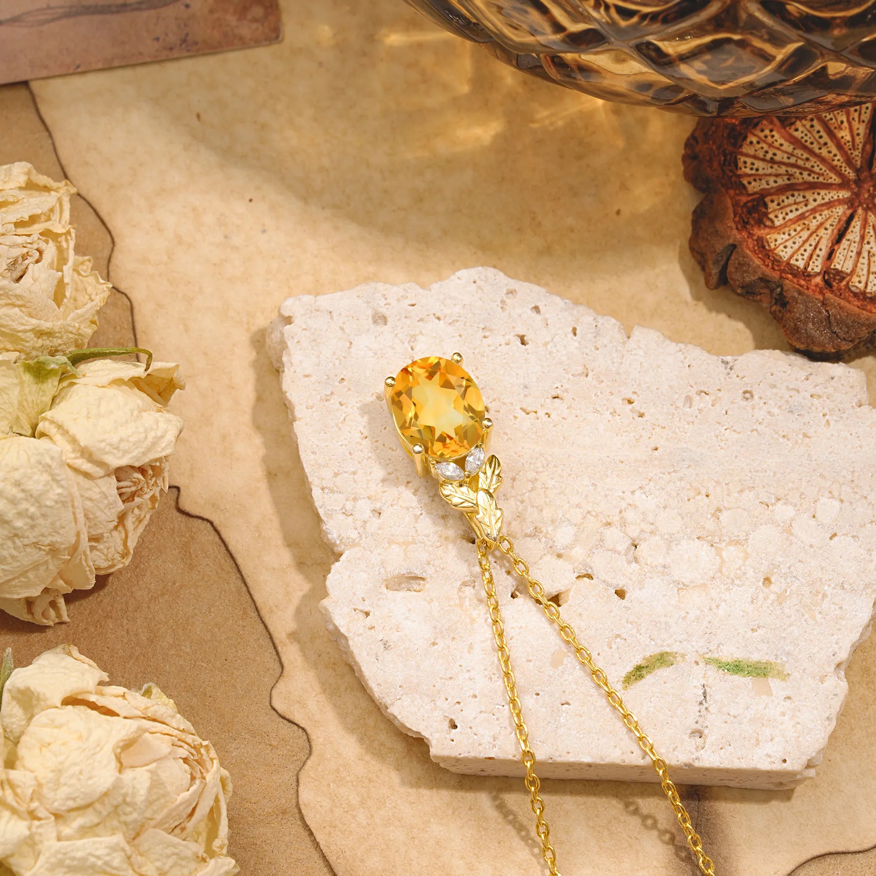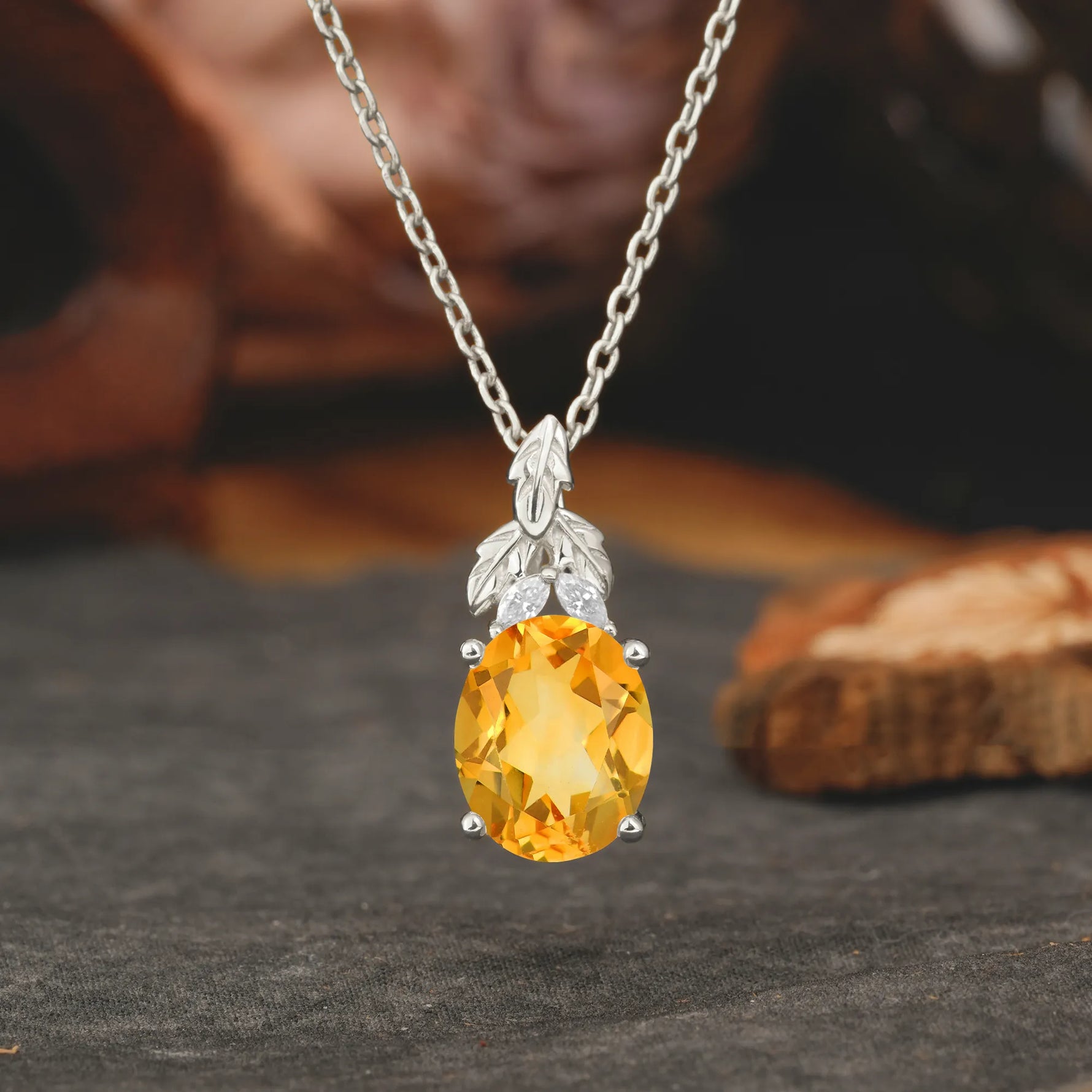 Leaf Accented Oval Cut Citrine Pendant Necklace Valentine’s Day Gifts For Women