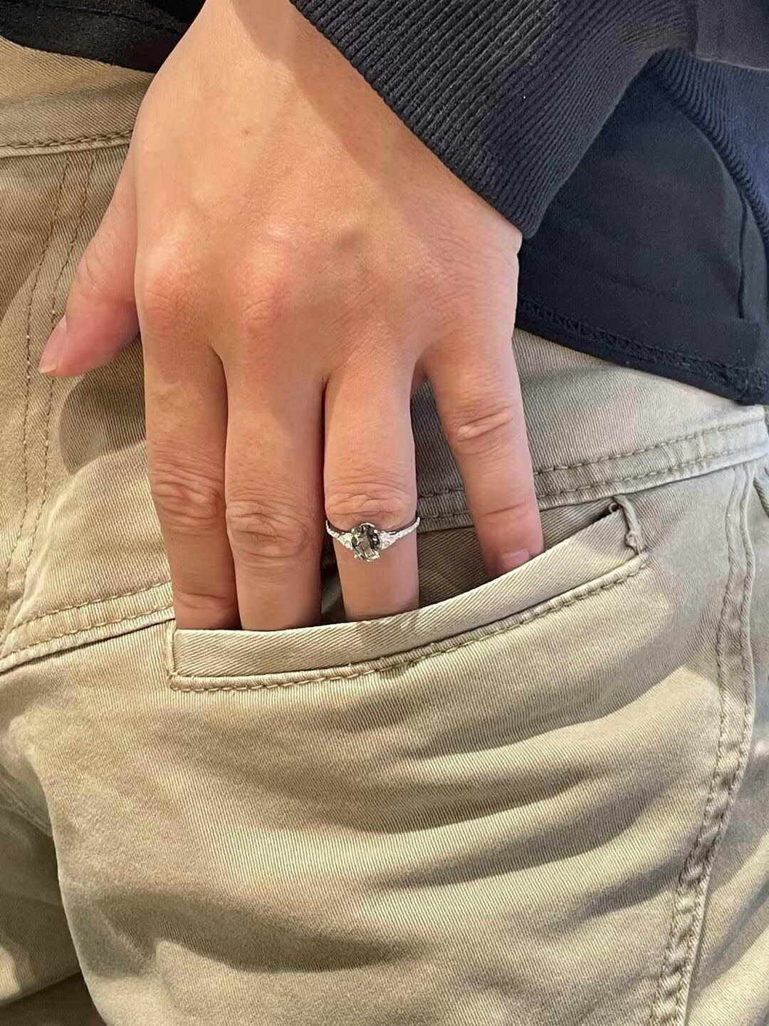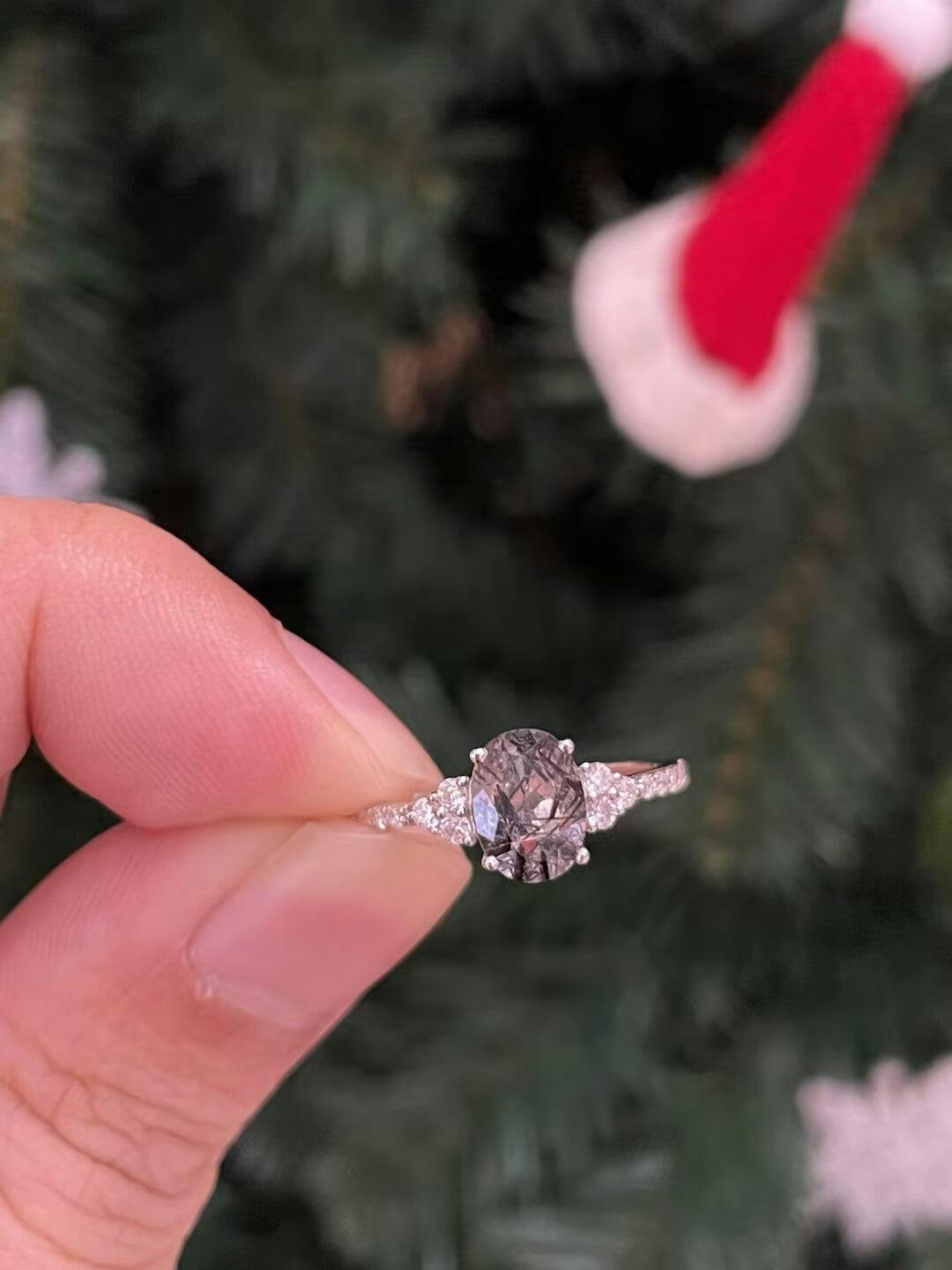 1.5 Carat Classic Vintage 4-Prong Oval Cut Black Rutilated Quartz Engagement Ring Anniversary Gift
