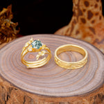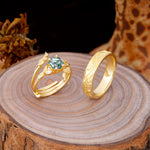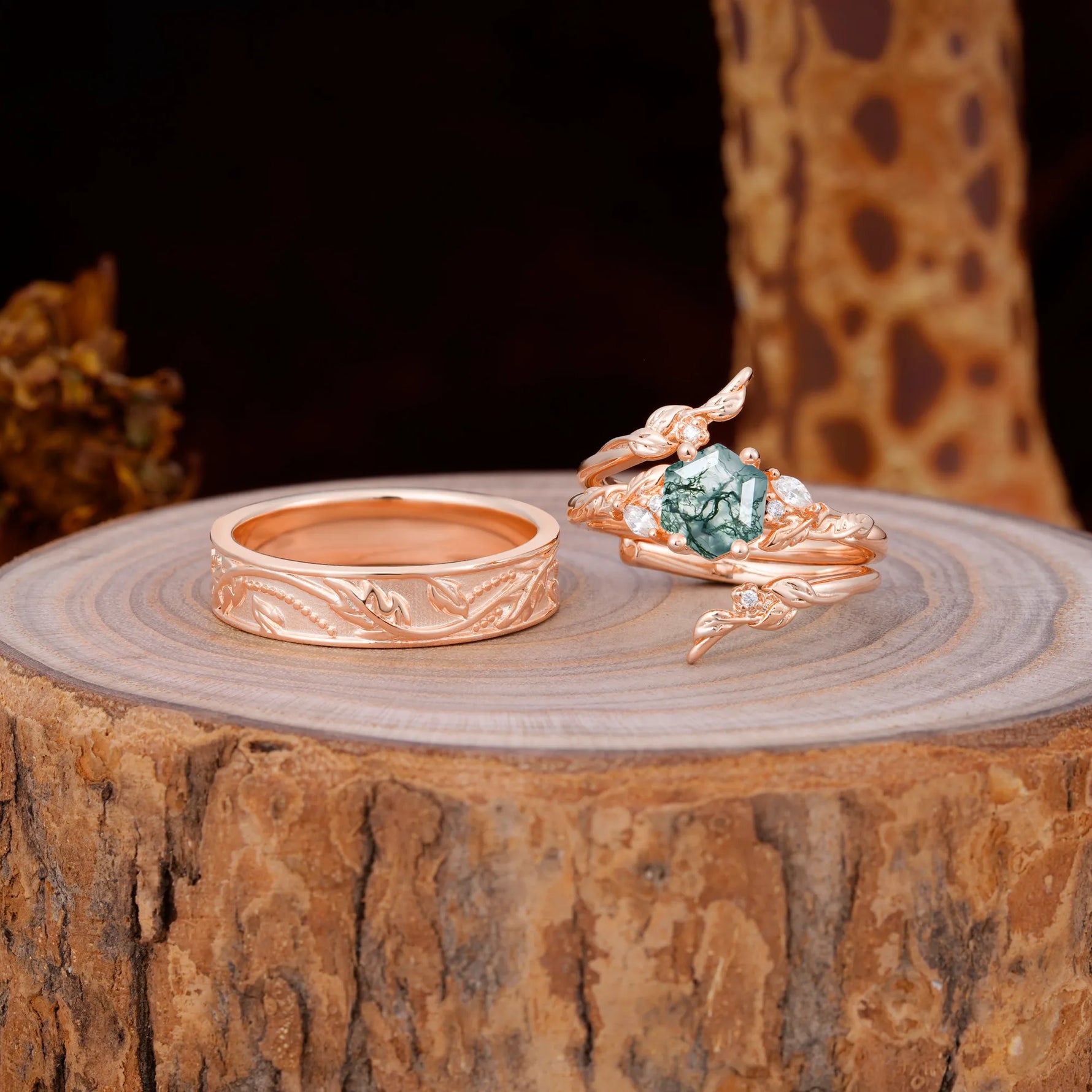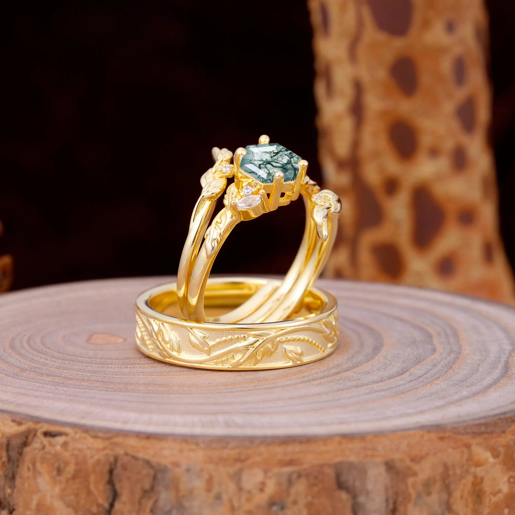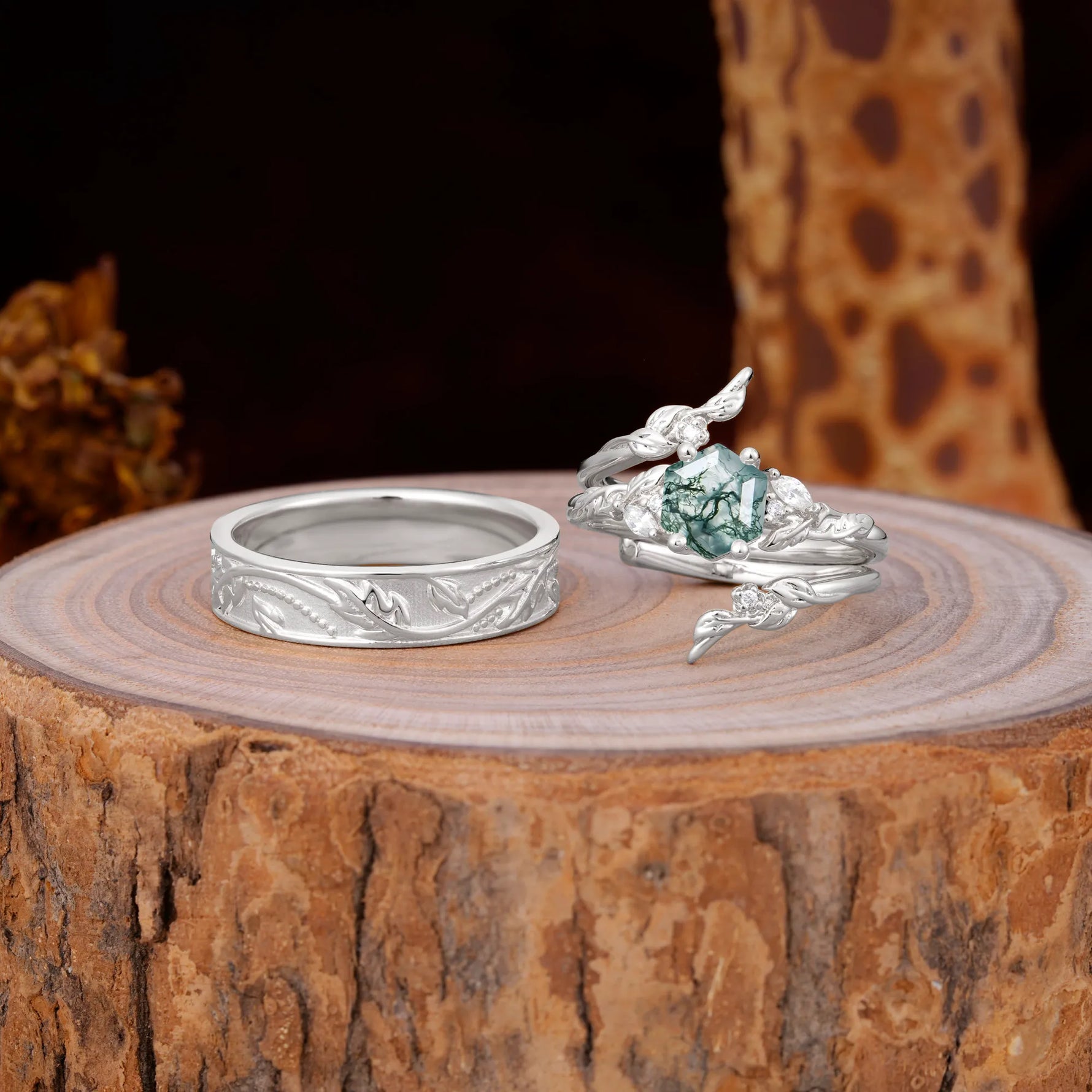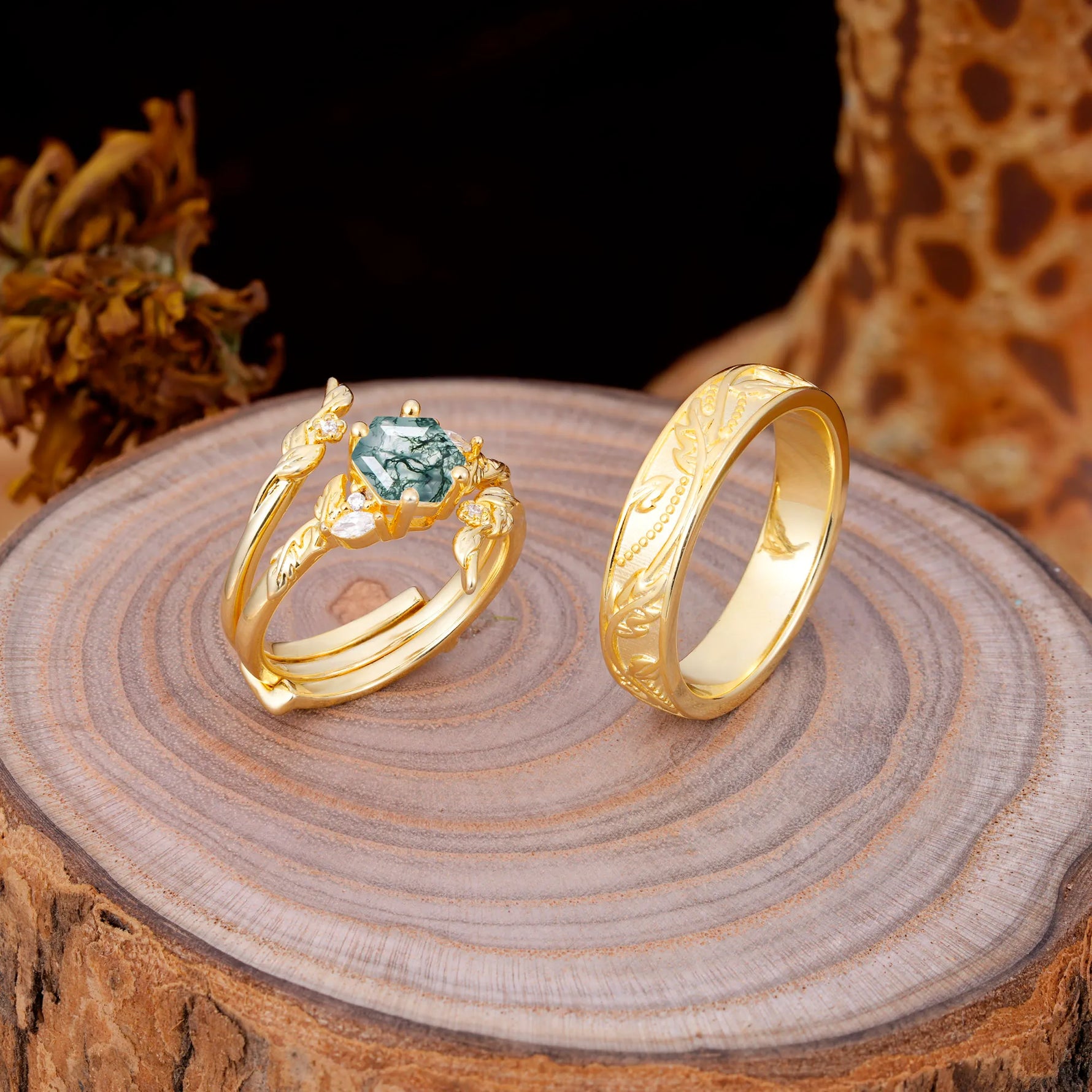 Nature Inspiration Luxury Retro 4-Prong Moss Agate Promise Couples Rings