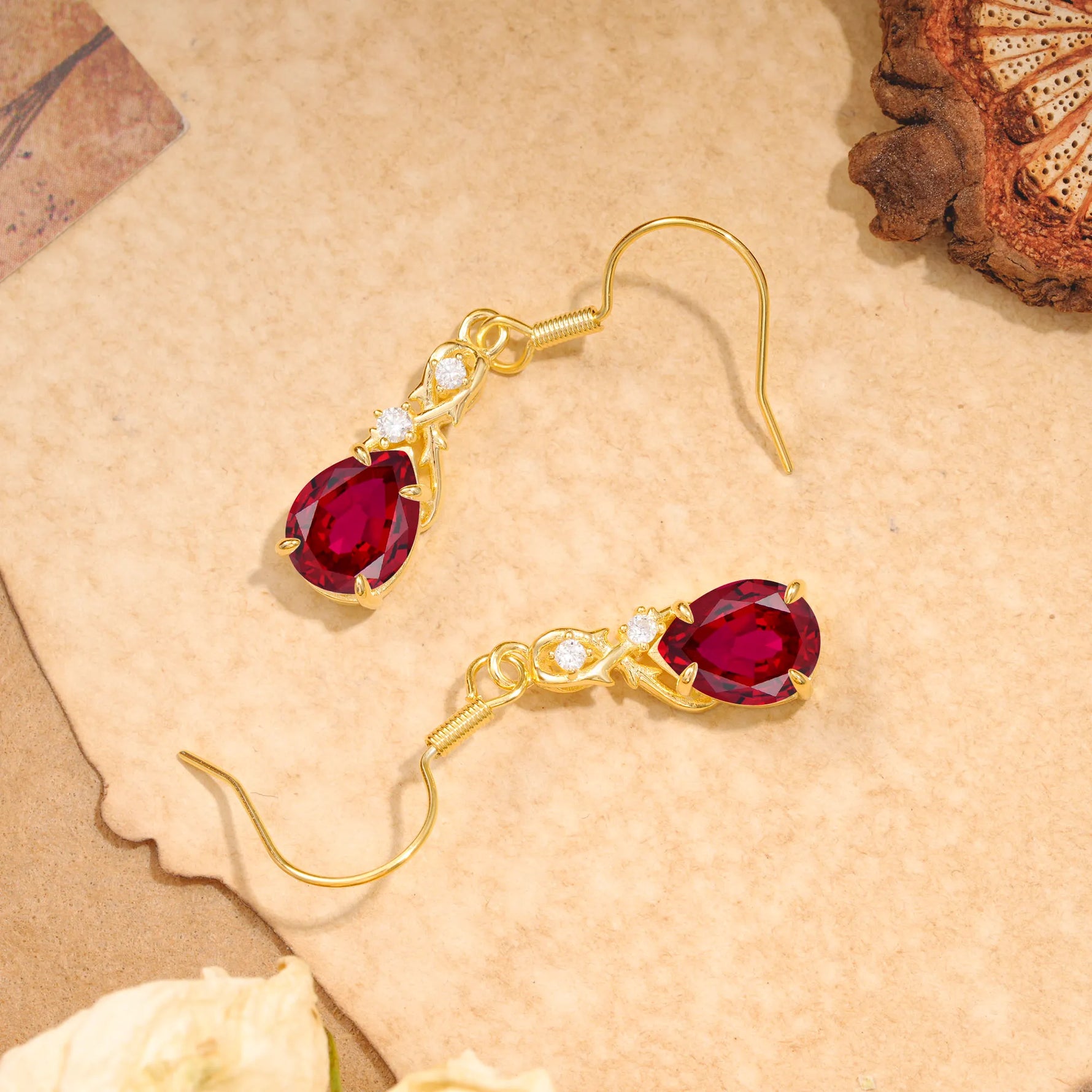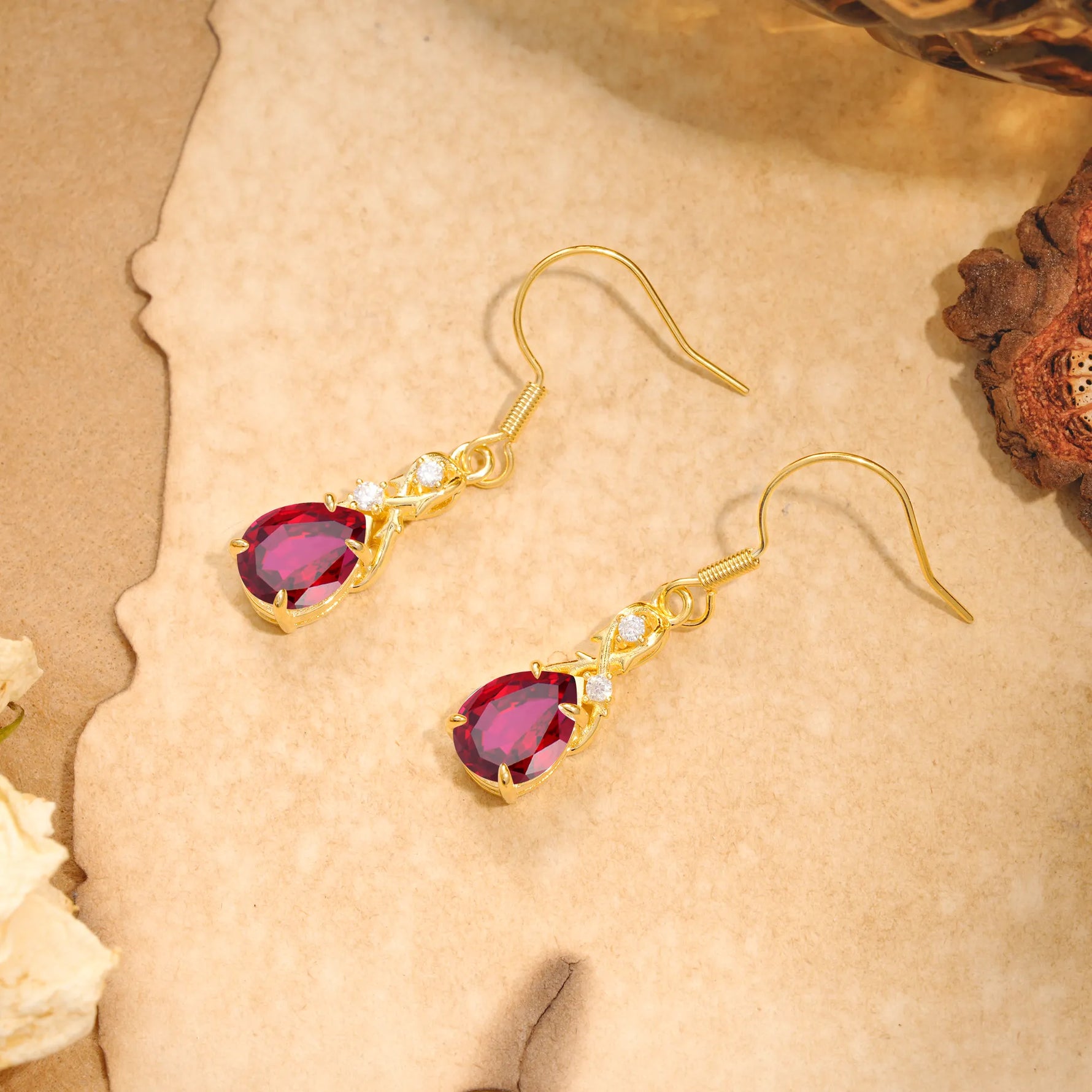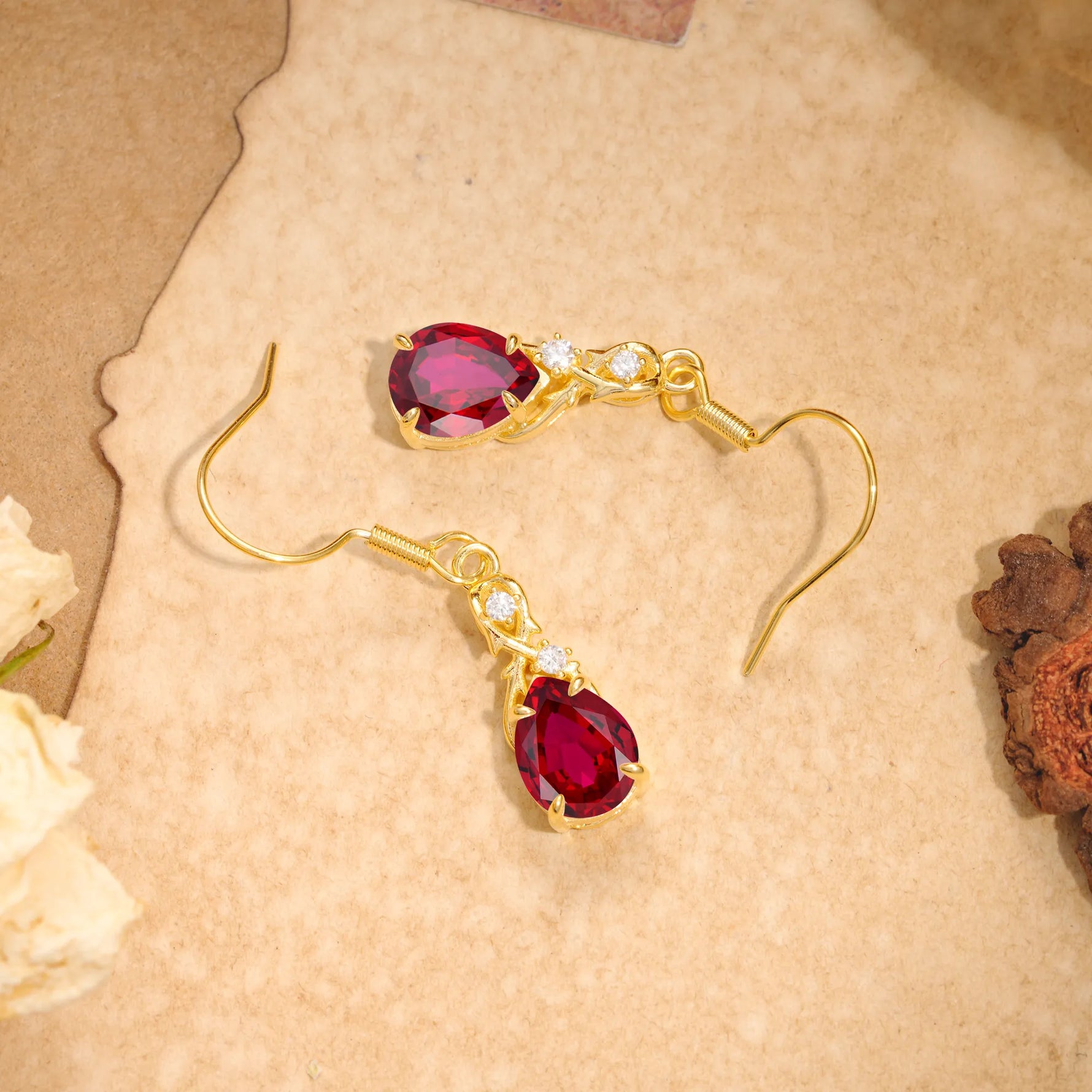 Elegant Pear Cut Lab Grown Ruby Earrings
