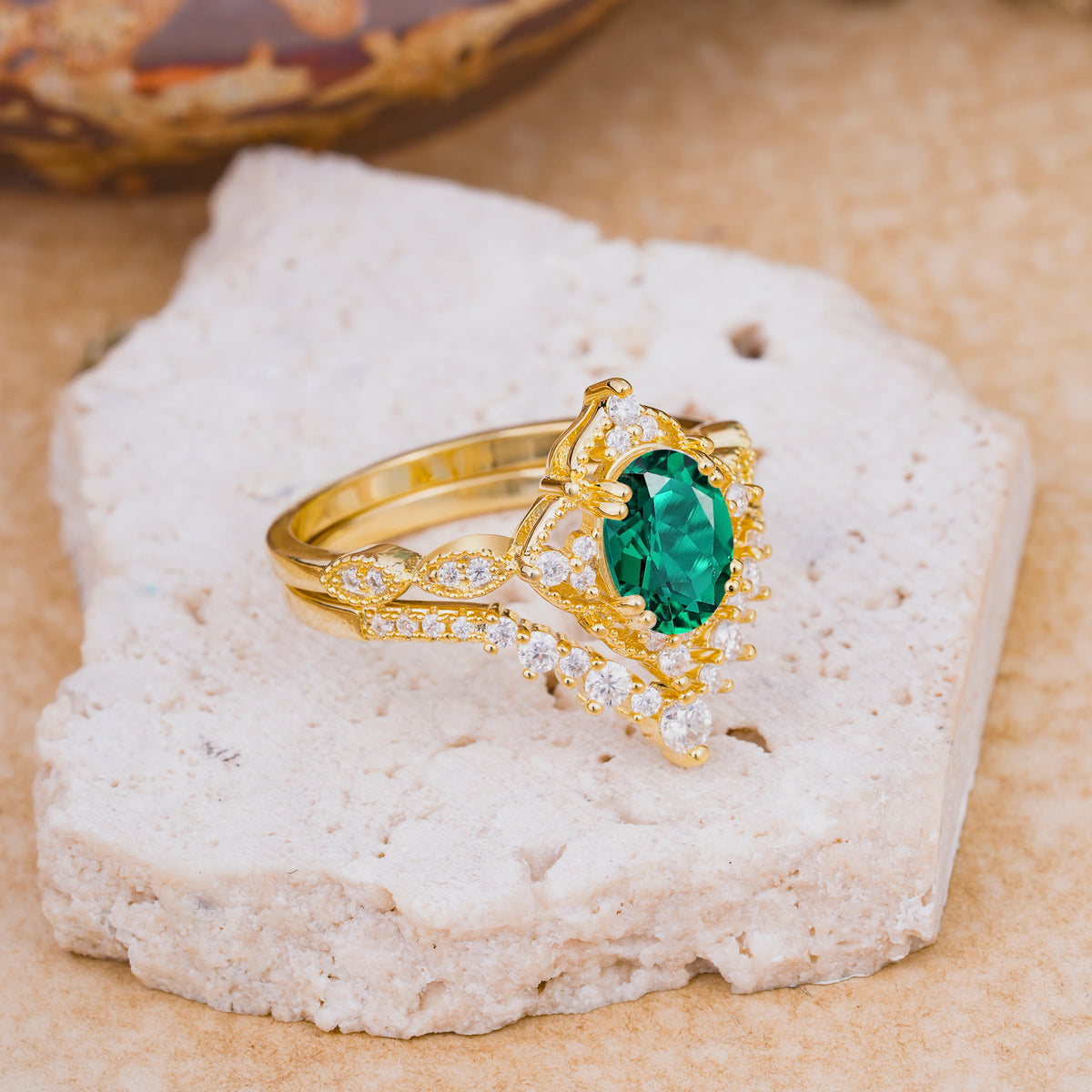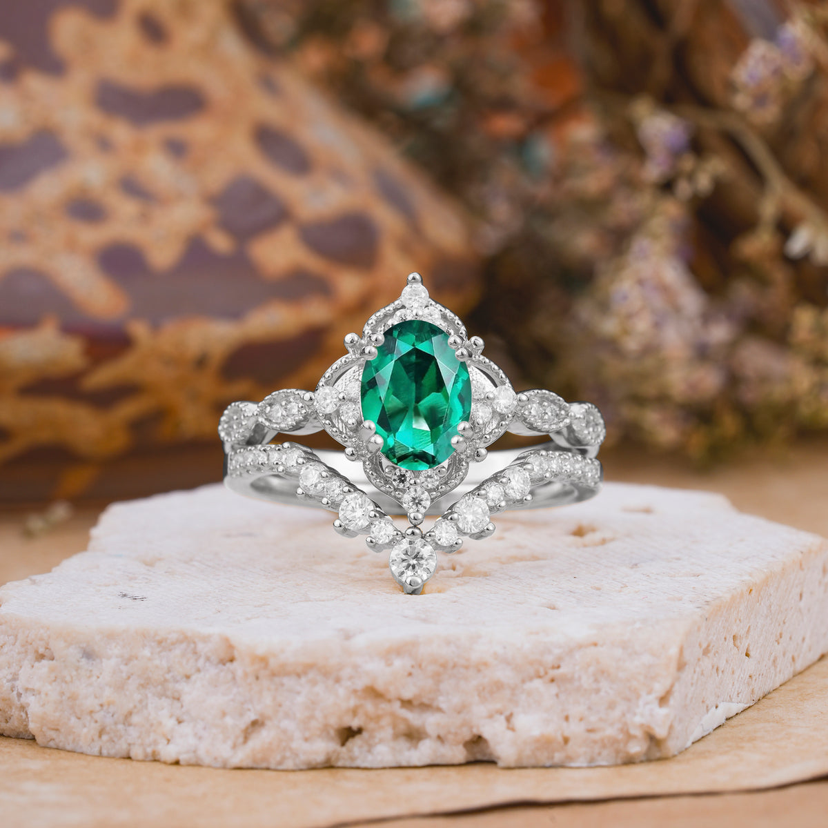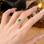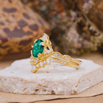 Classic Oval Cut Emerald Engagement Bridal Ring Set