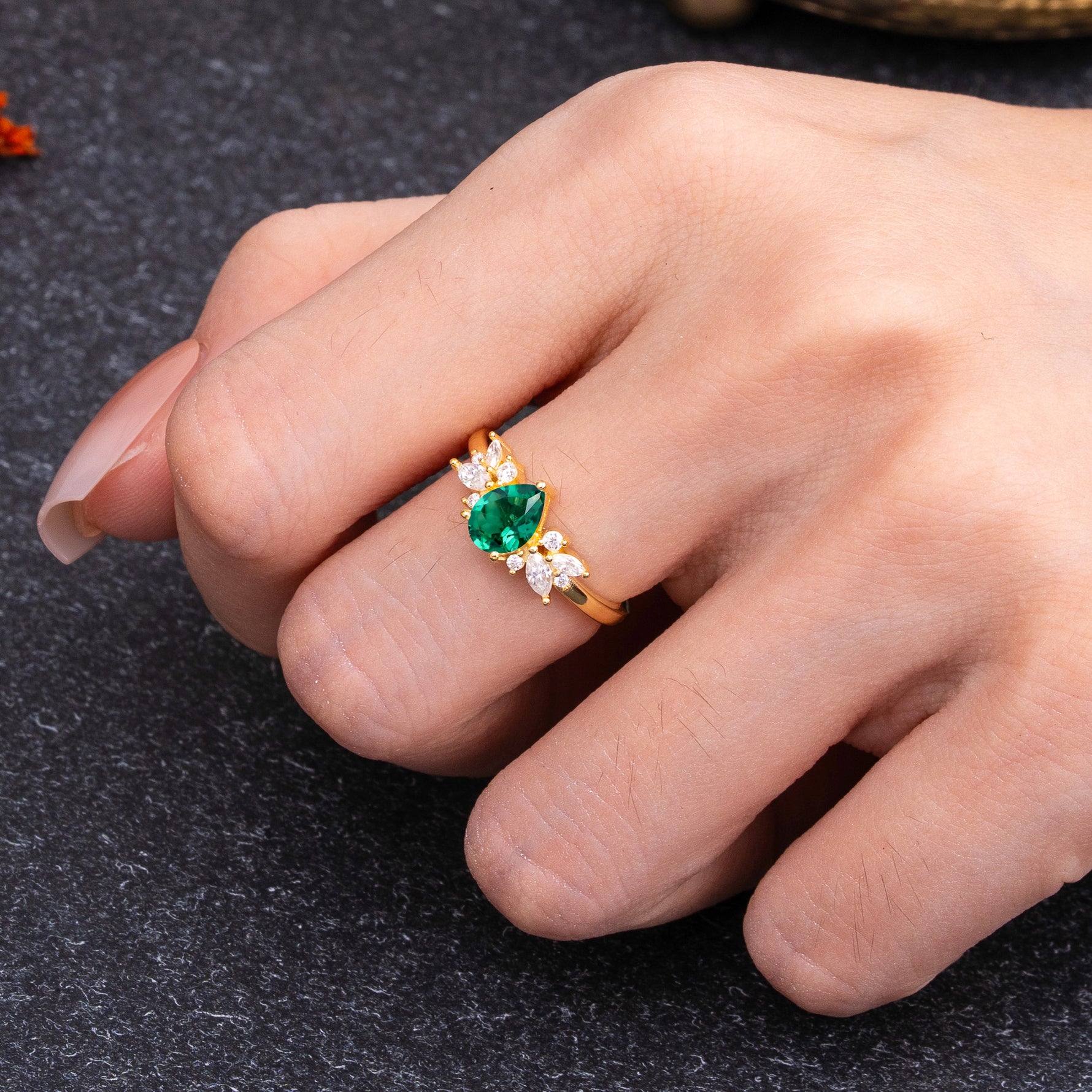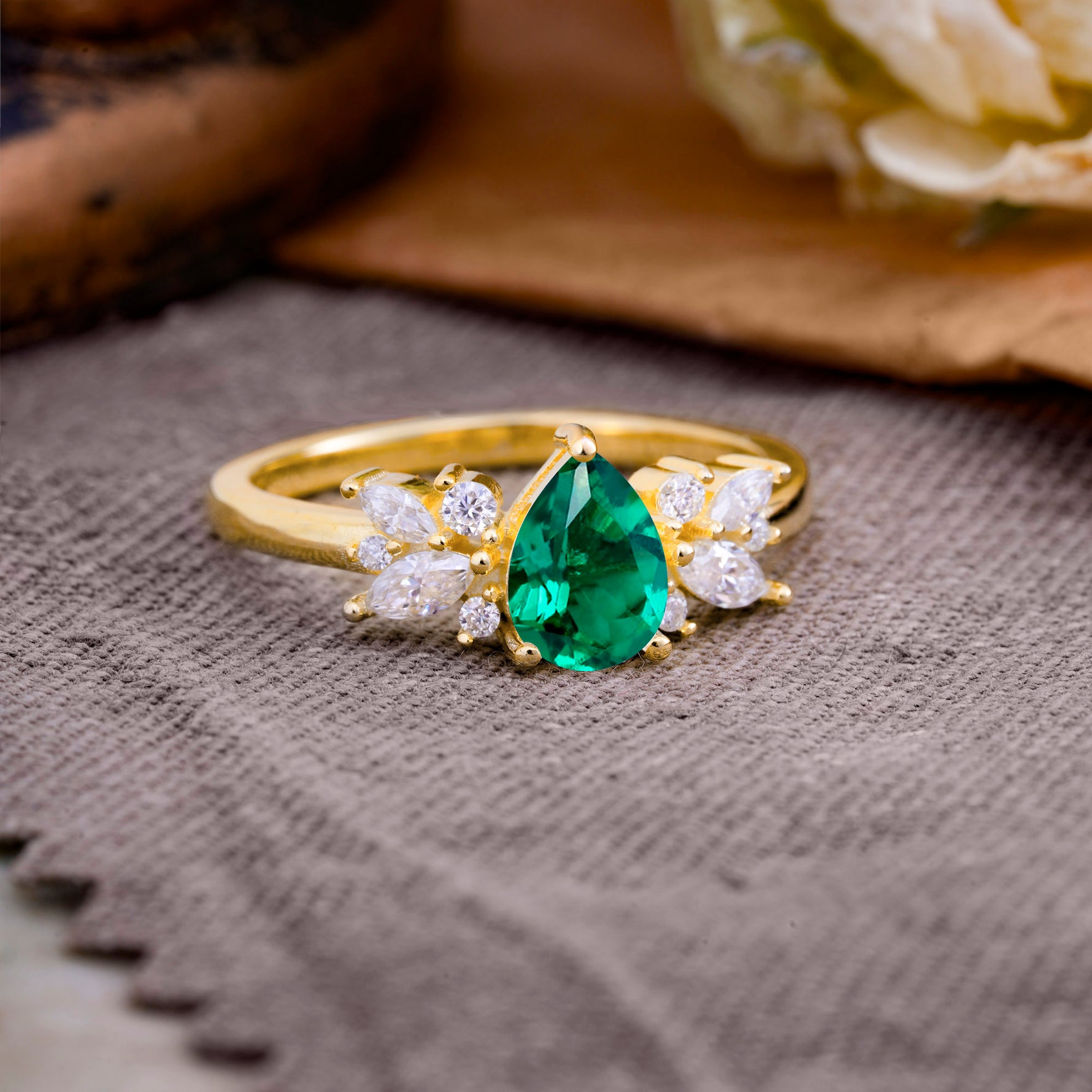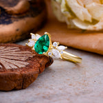 Unique Pear Shaped Emerald Engagement Ring for Women