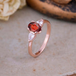 Oval Garnet and Pear Moissanite Ring with 2 Side Stones