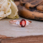 1 Carat Oval Garnet Engagement Ring Three Stone Engagement Ring