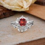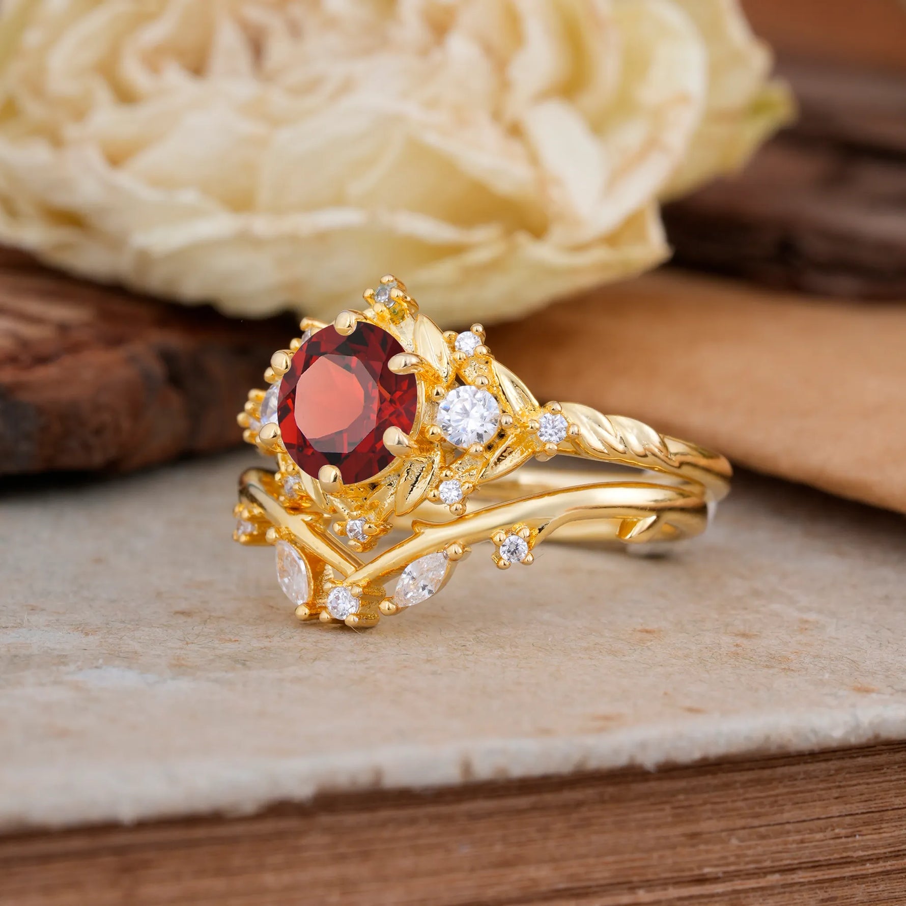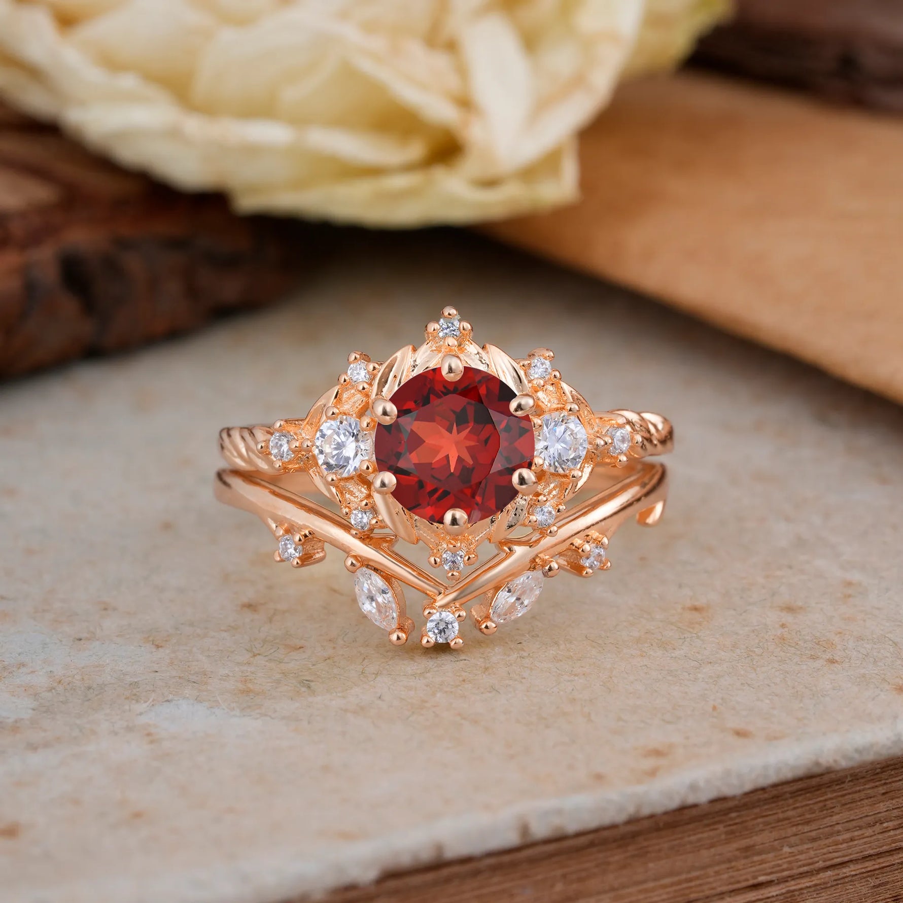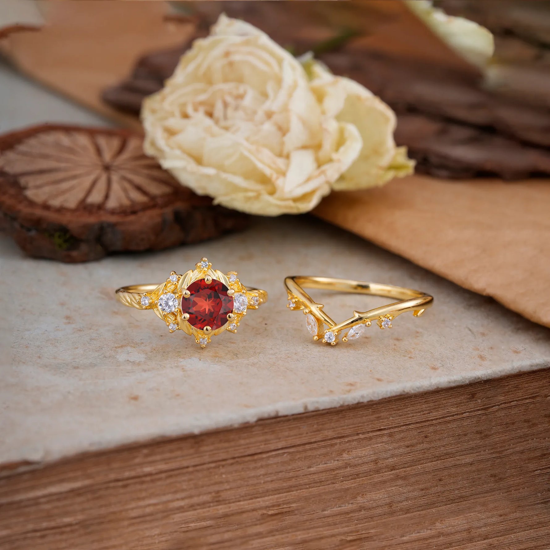 Fashion-Exquisite 6-Prong Round-Cut Natural Garnet Engagement Ring Set