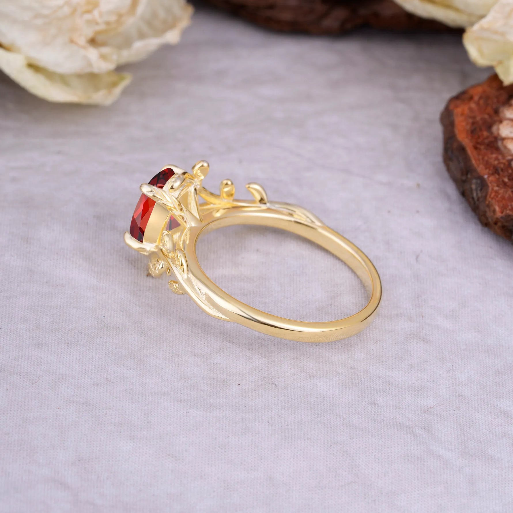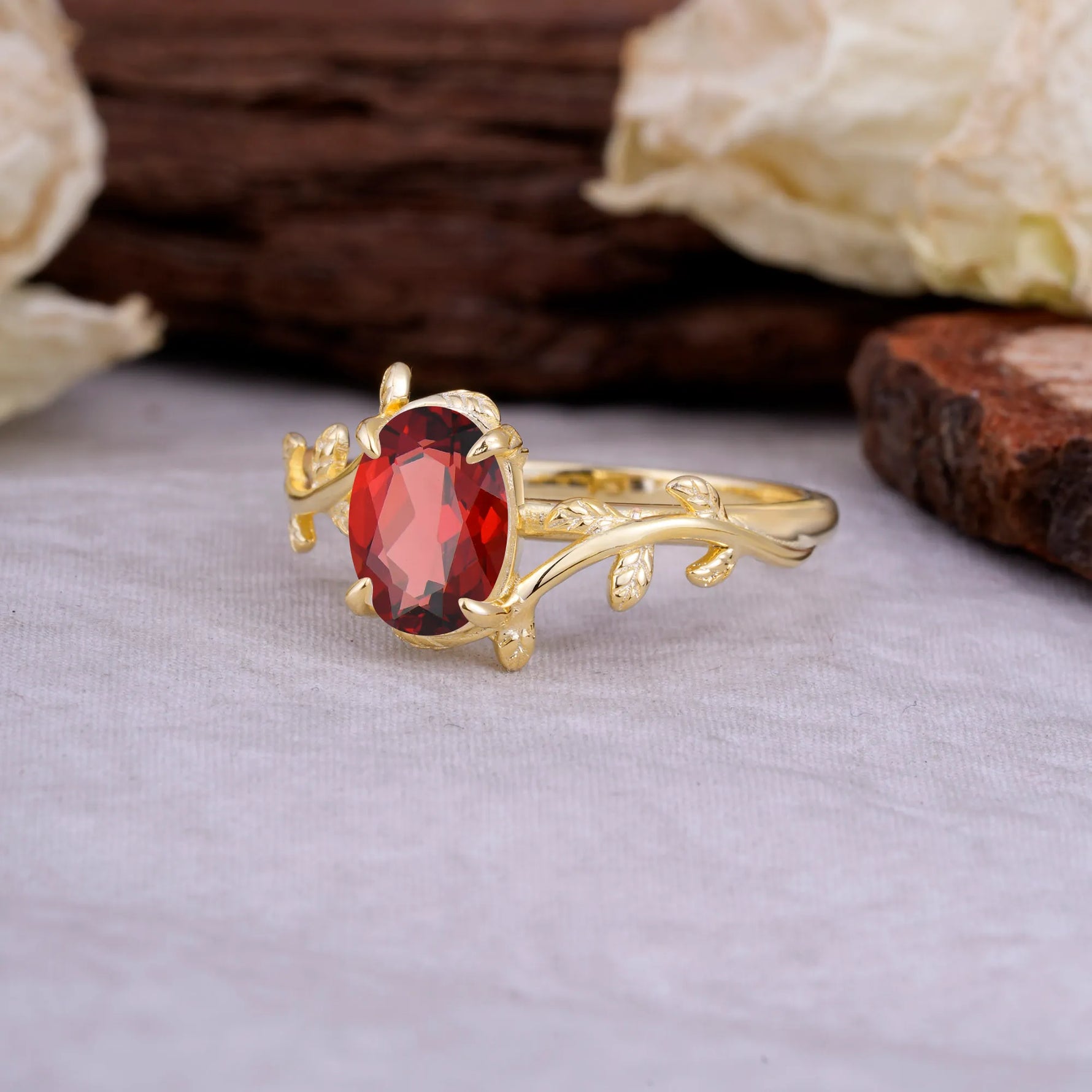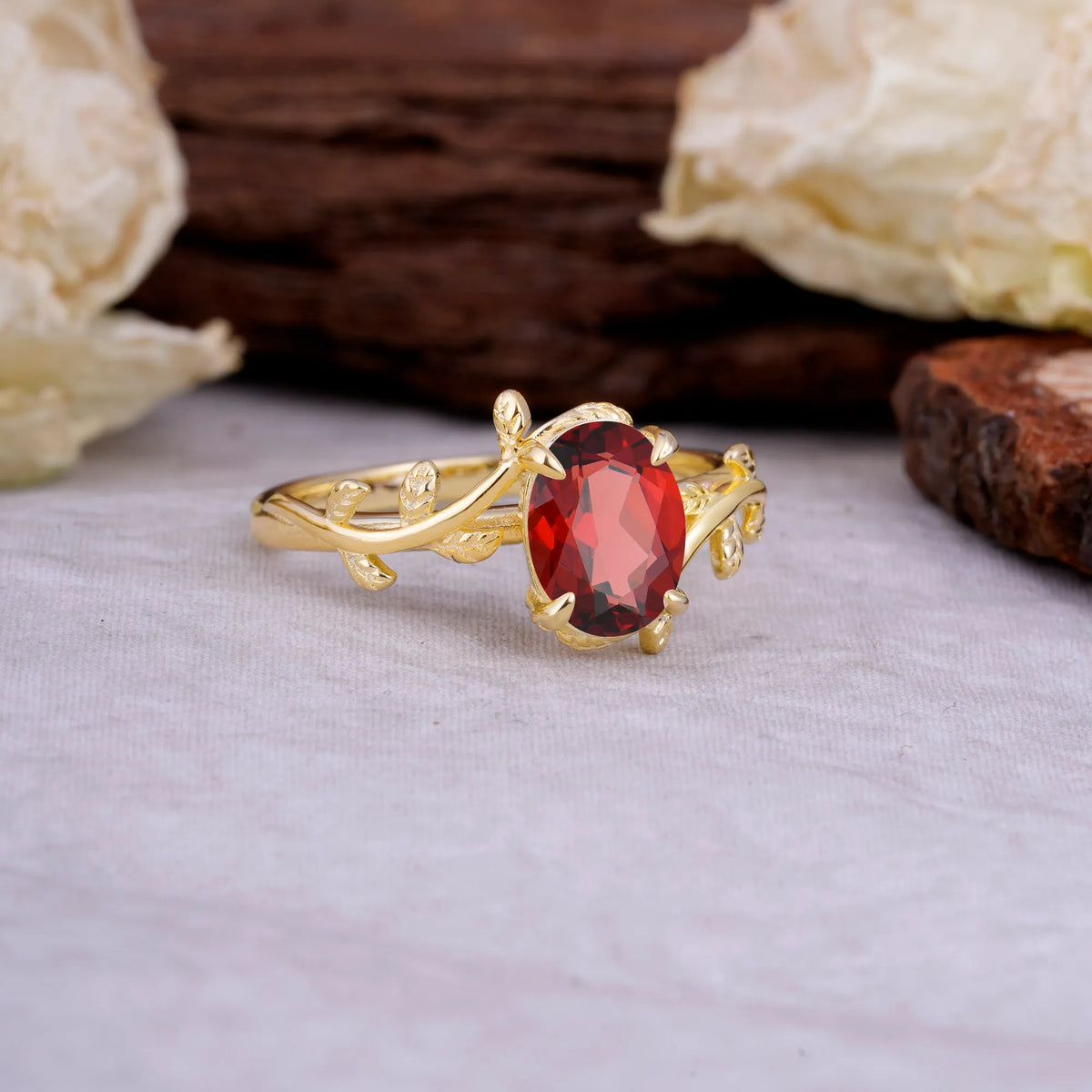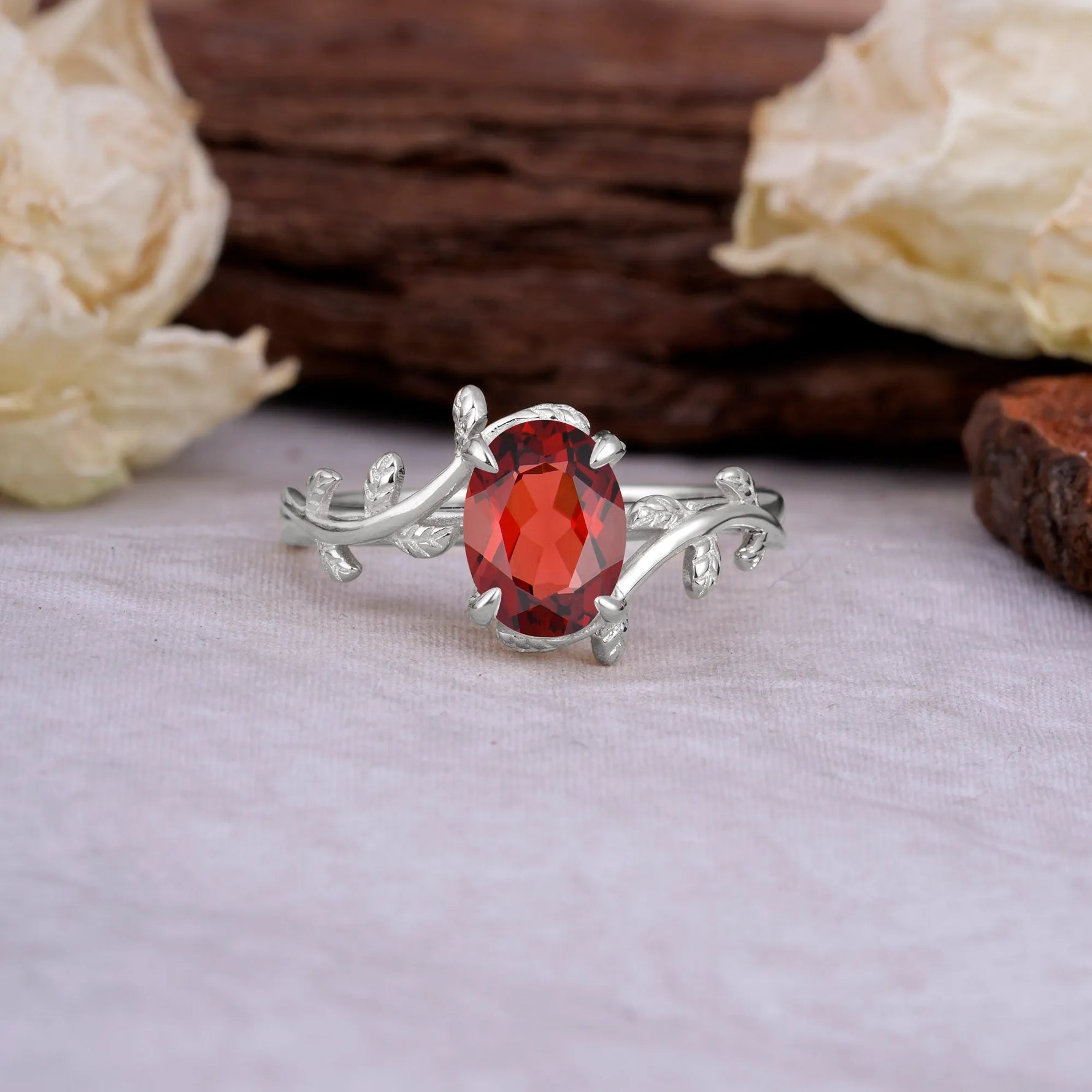 Nature Inspired 4 Prong Oval Cut Garnet Engagement Ring