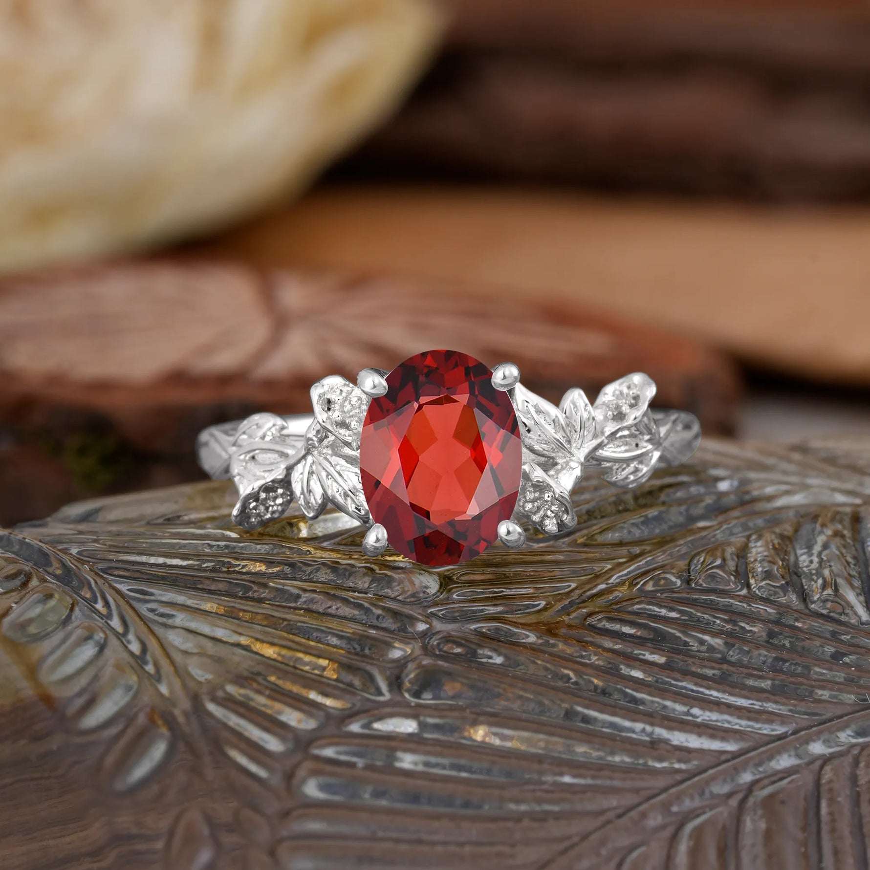 Nature-Inspired 4-Prong Oval-Cut Natural Garnet Engagement Ring