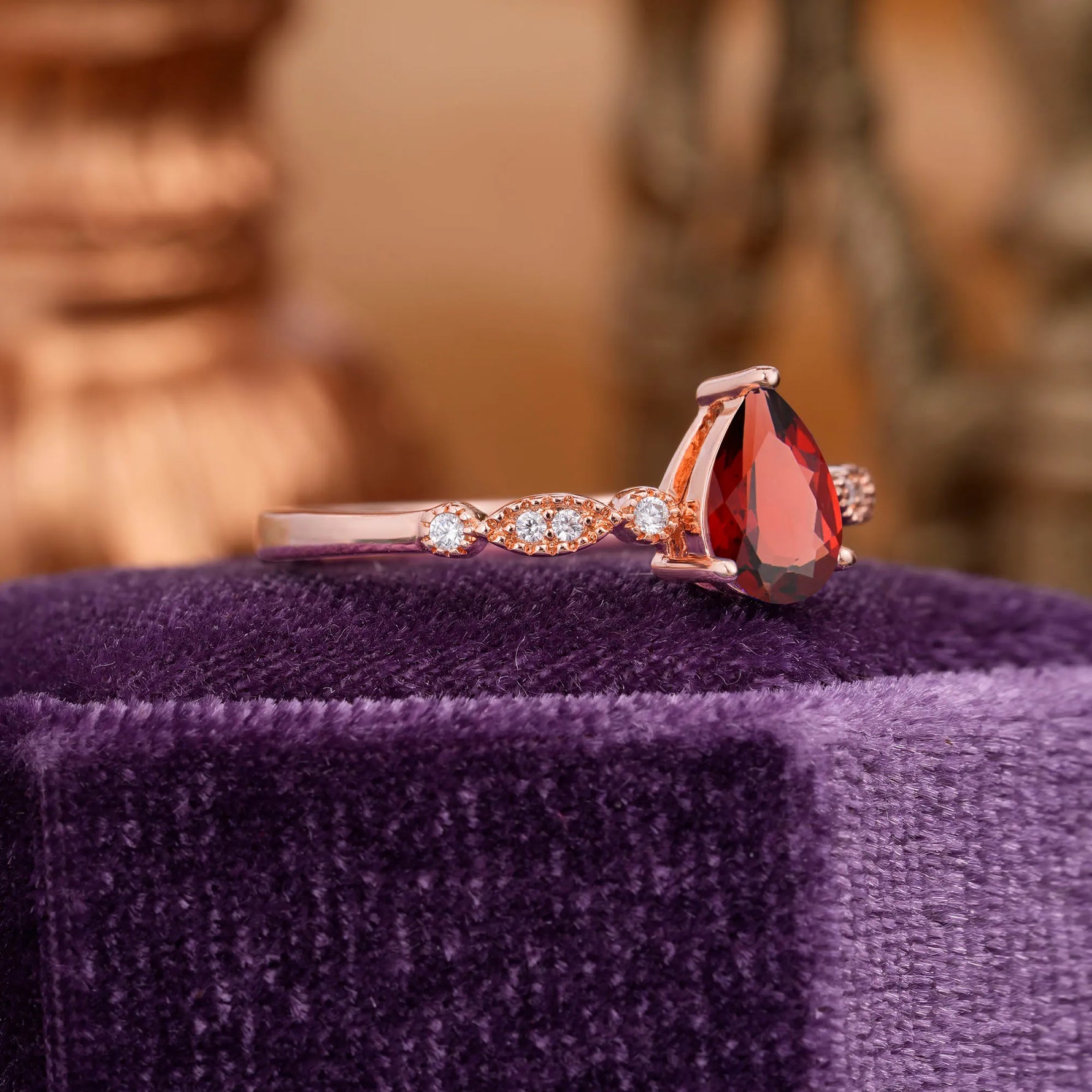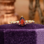 Pear Shaped Vintage Garnet Engagement Ring Beaded Promise Ring