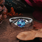 Halloween Limited-Gothic Nature-Inspired Hexagon Cut Black Rutilated Quartz Ring