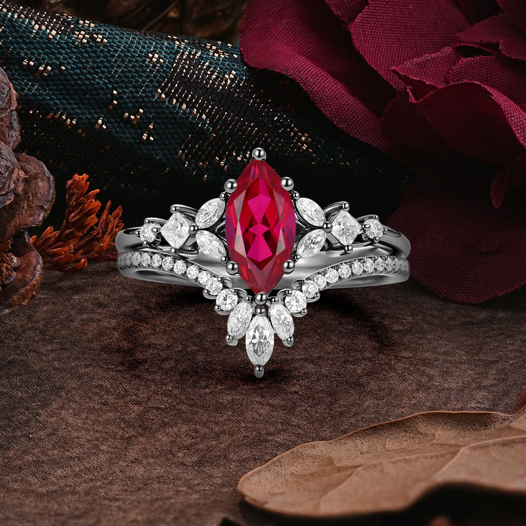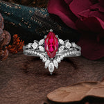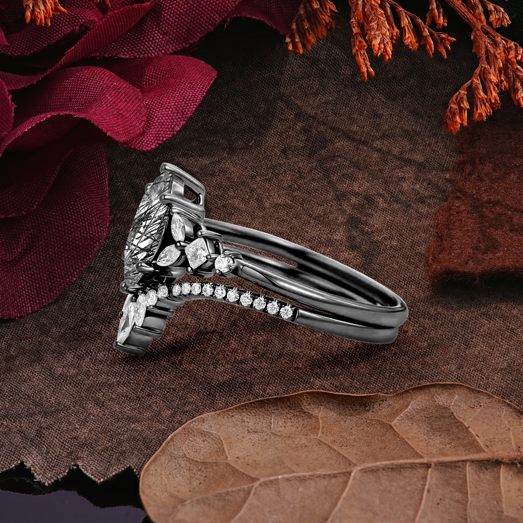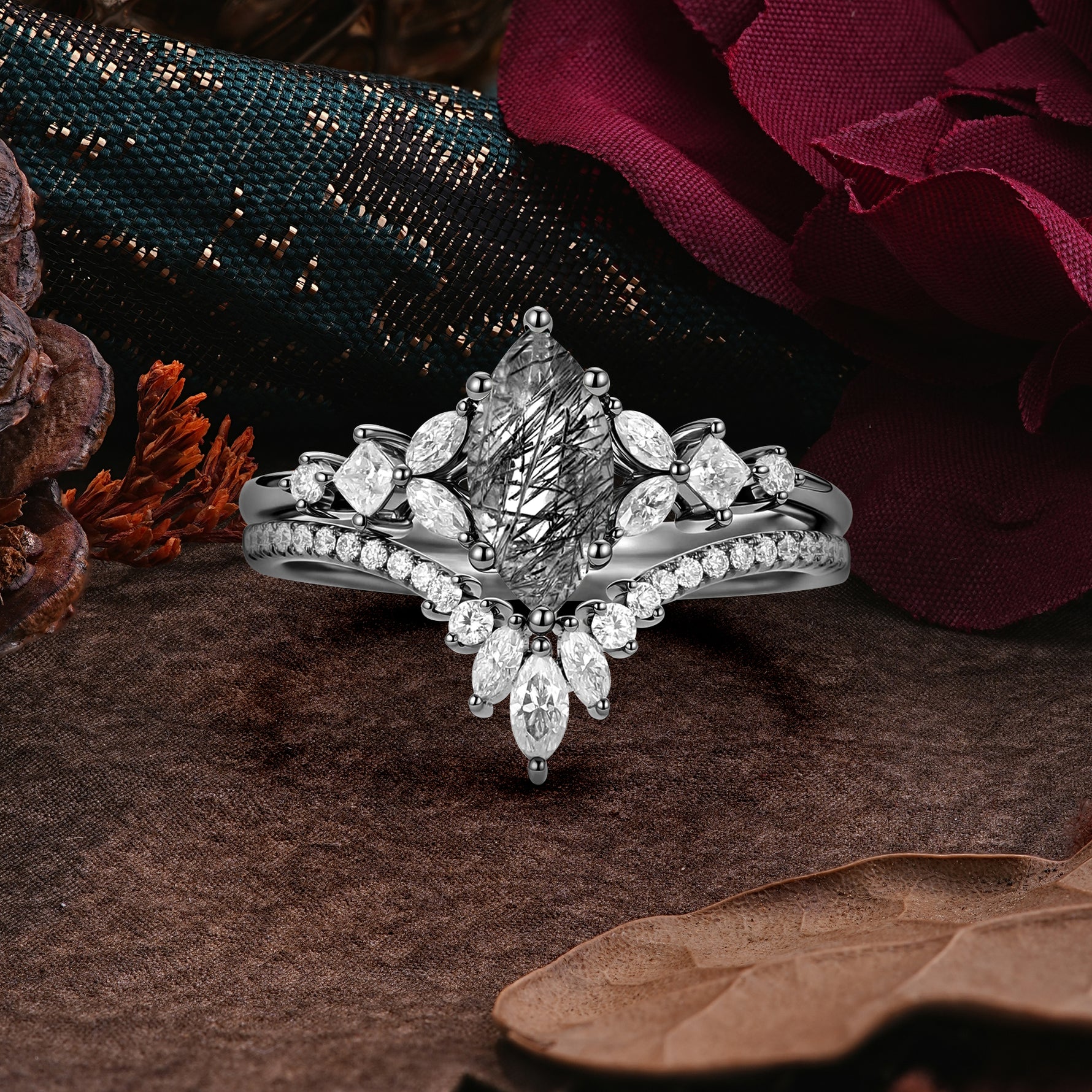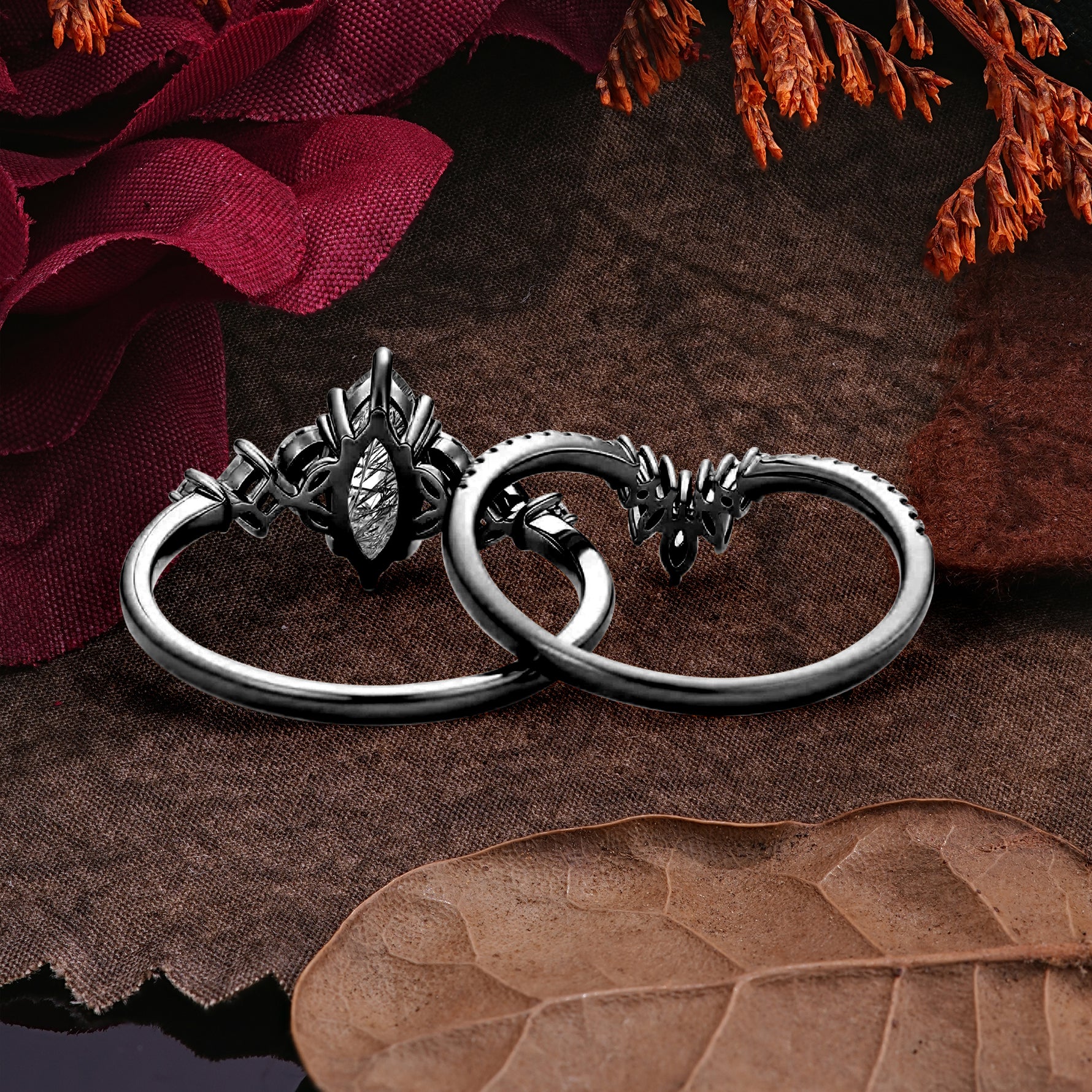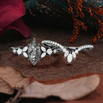 Halloween Limited-Luxury Classic 6 Prong Marquise Cut Black Rutilated Quartz Ring Set
