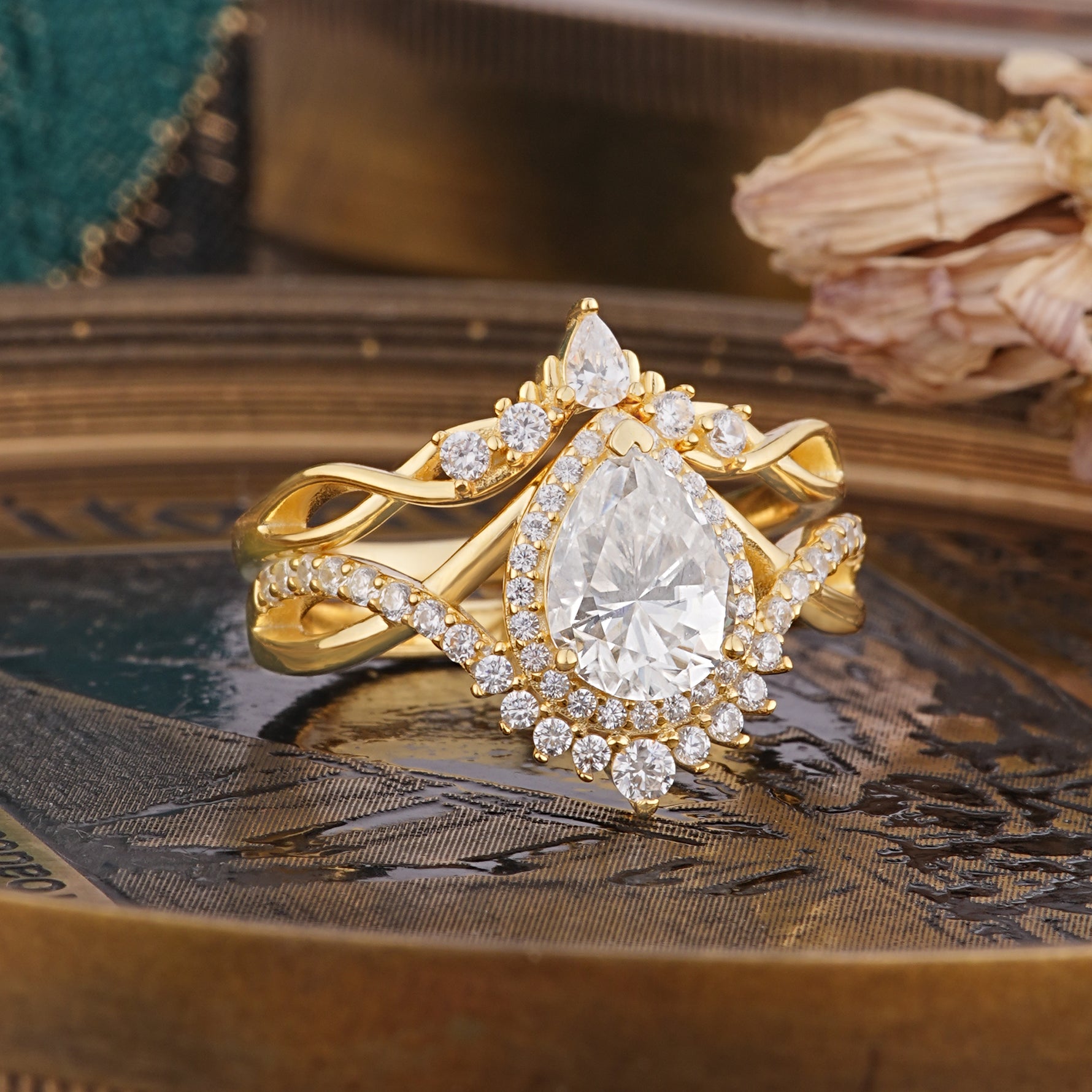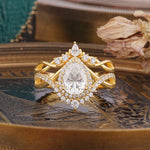 Elegant Pear-Cut Moissanite Engagement Ring Set