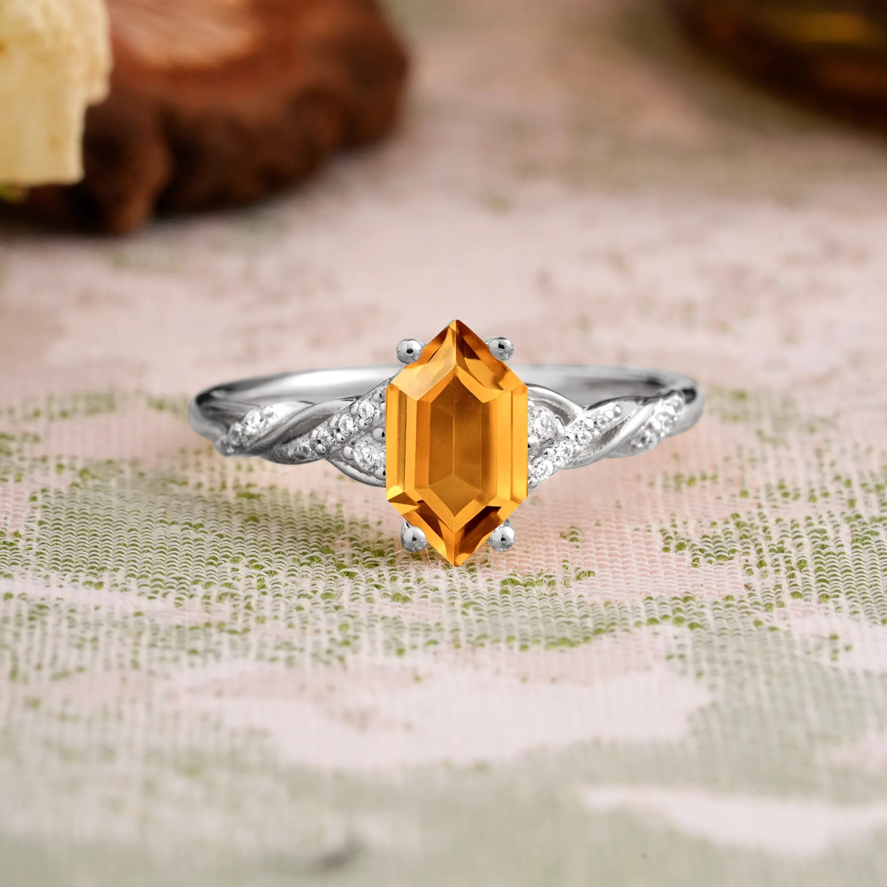 Classic 4-Prong Hexagonal-Cut Citrine Engagement Ring