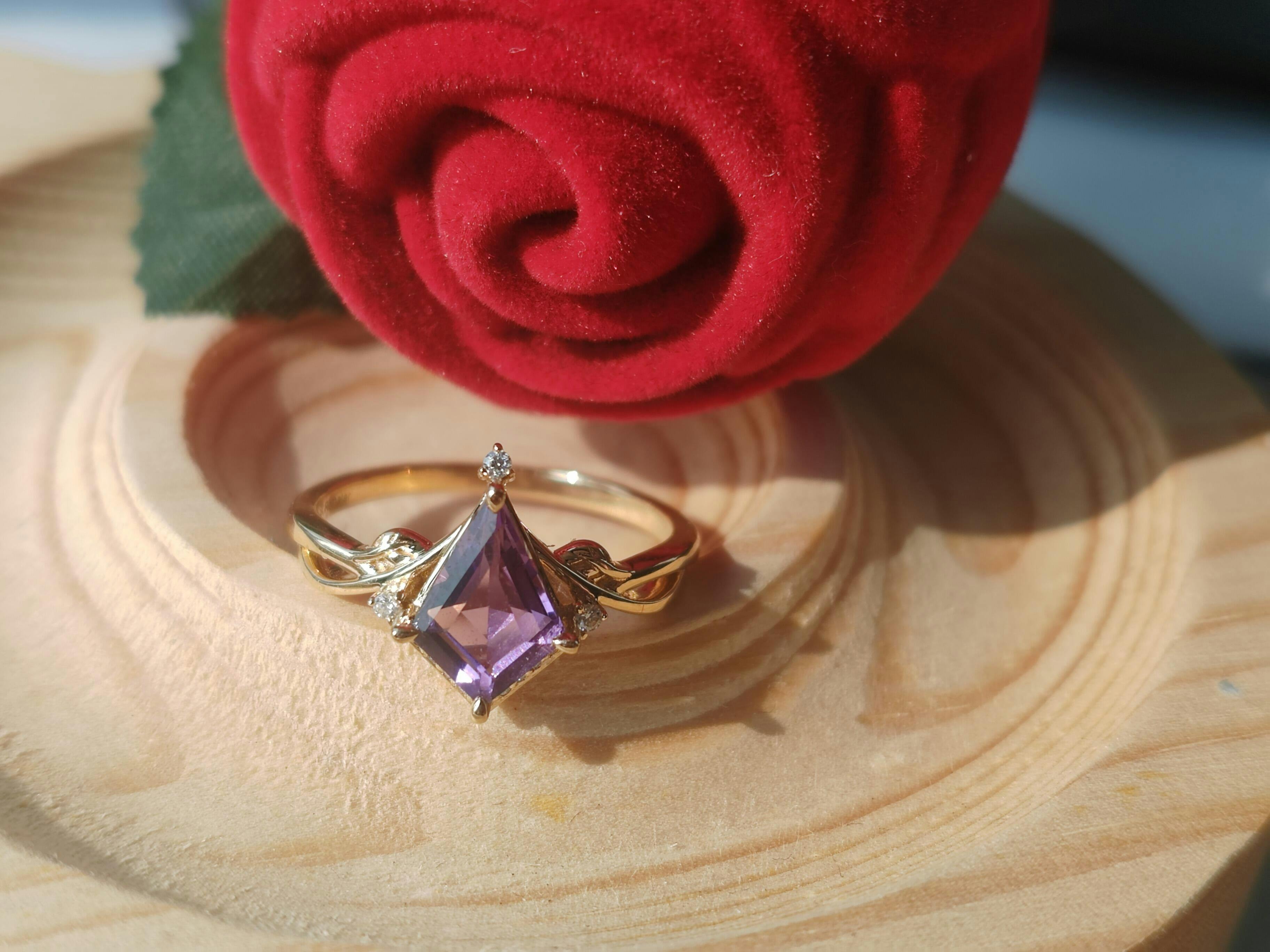 Elegant Kite Cut Amethyst Engagement Ring for Women
