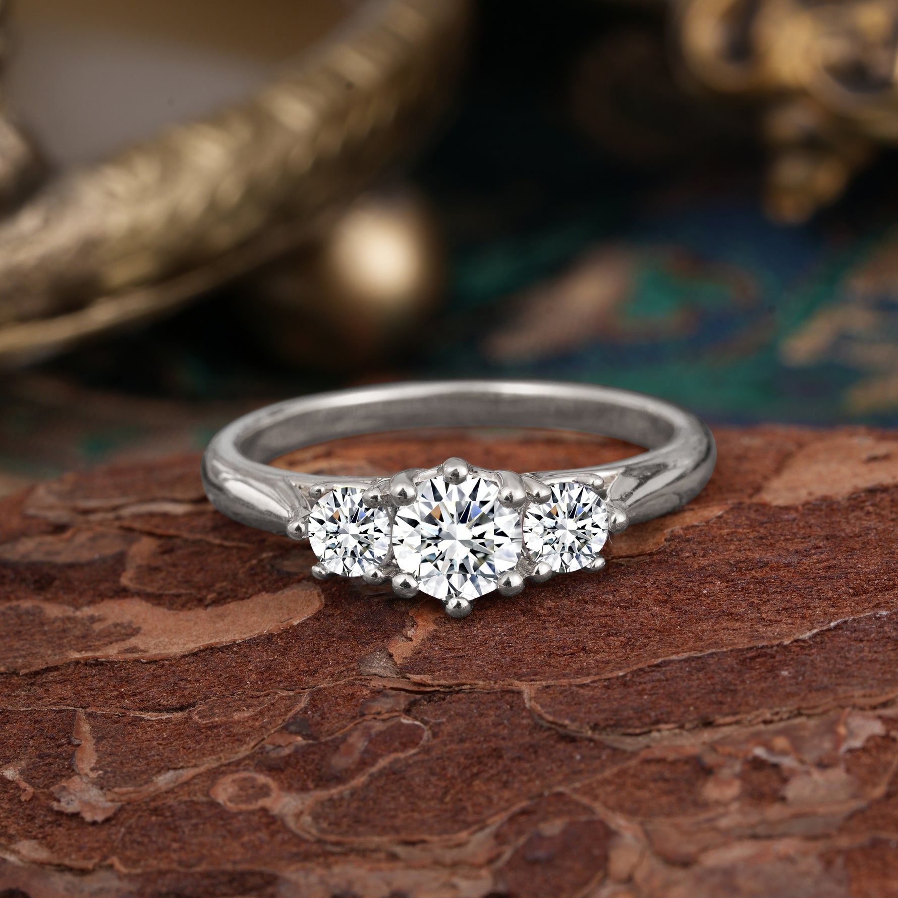 Round Cut 6 Prong Lab Diamond Engagement Ring Classic Three Stone Bridal Ring