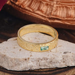 Vintage Emerald Cut Moss Agate Mens Engagement Rings