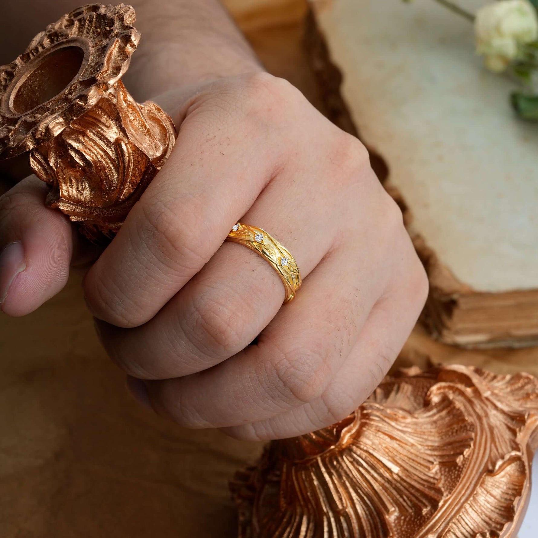 Antique Round Cut Leaf Engraved Design Men's Lab Diamond Ring
