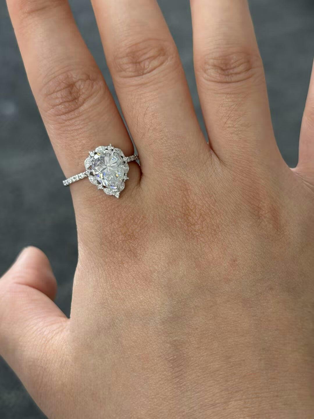 3 Carat Pear Cut Vintage White 3 Prong Moissanite Ring Pave Engagement Ring
