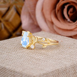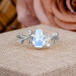 Nature Inspired 4 Prong Coffin-Cut Moonstone Engagement Ring