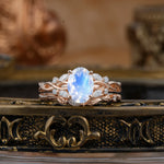 Nature-inspired 4-Prong Oval Cut Moonstone Stacking Ring