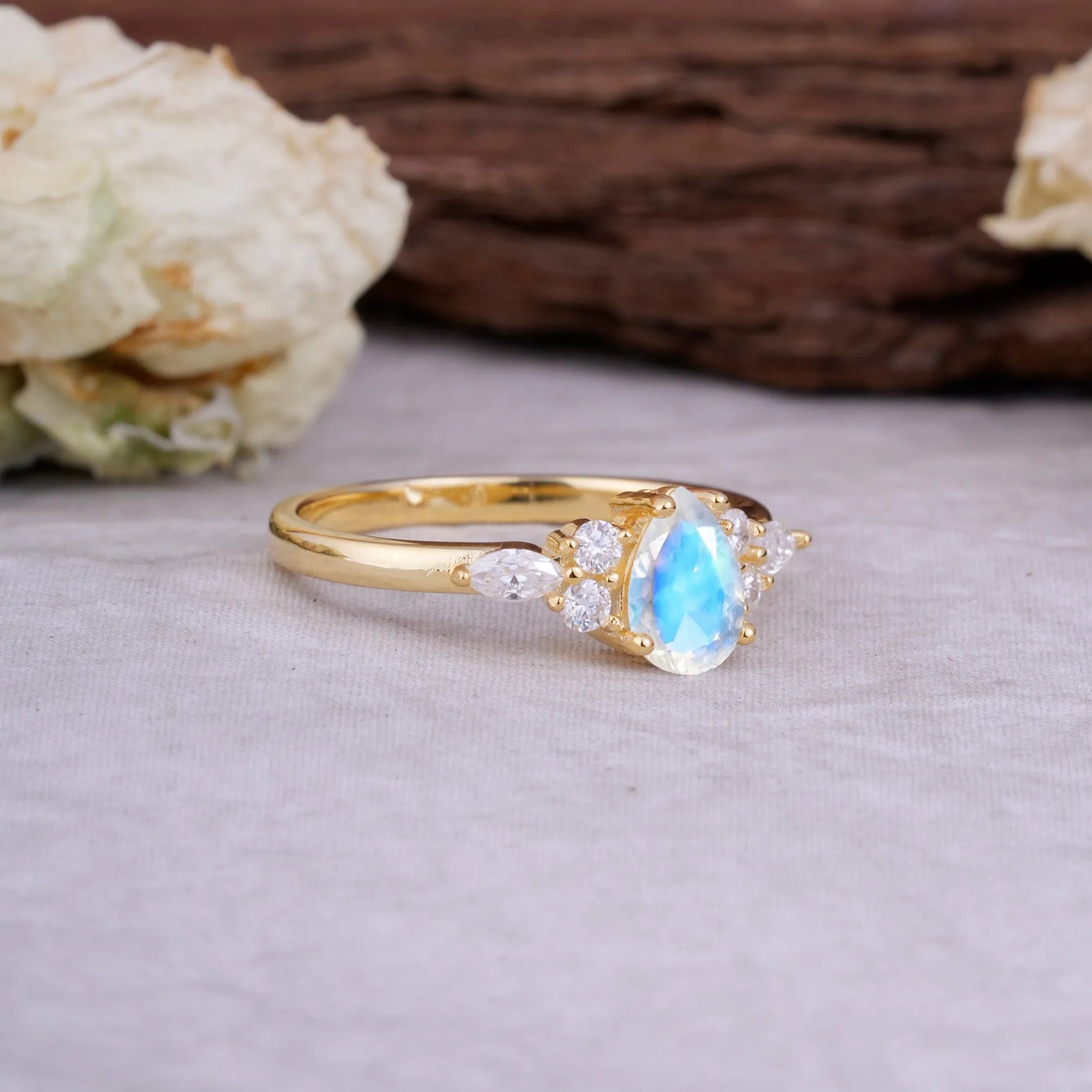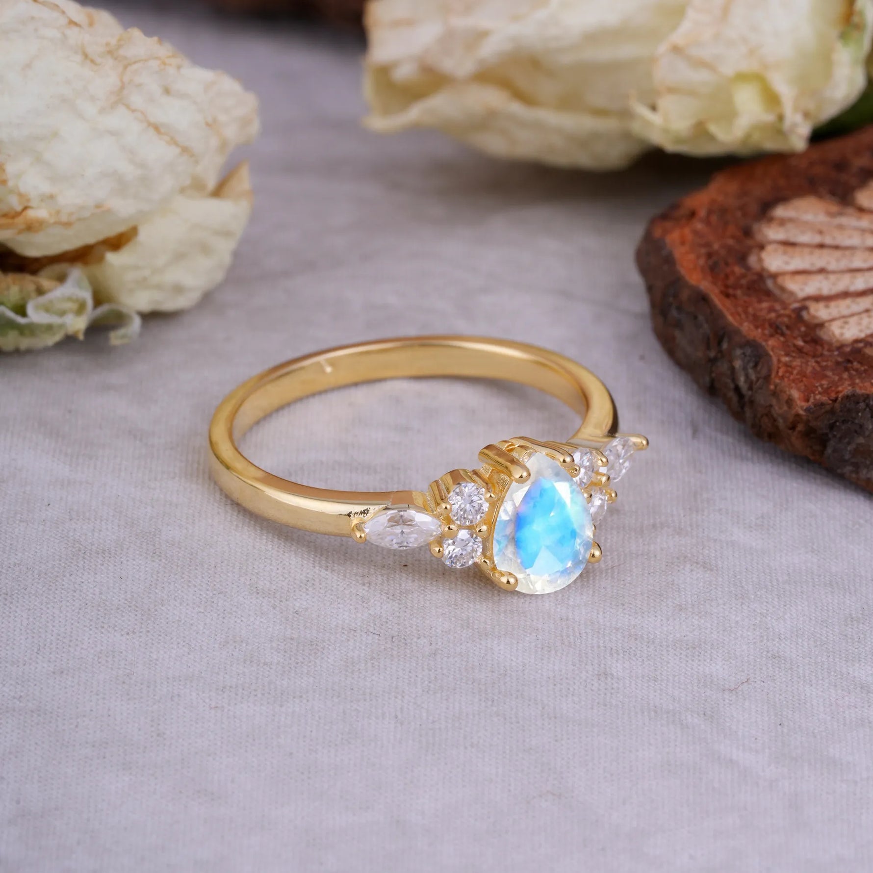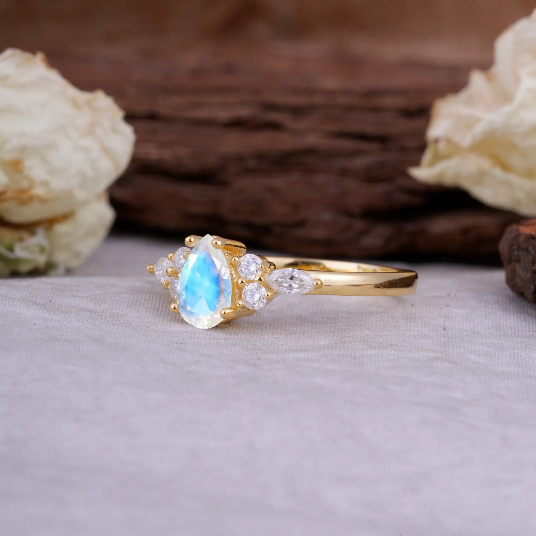 Sophisticated 4-Prong Pear-Cut Moonstone Promise Ring