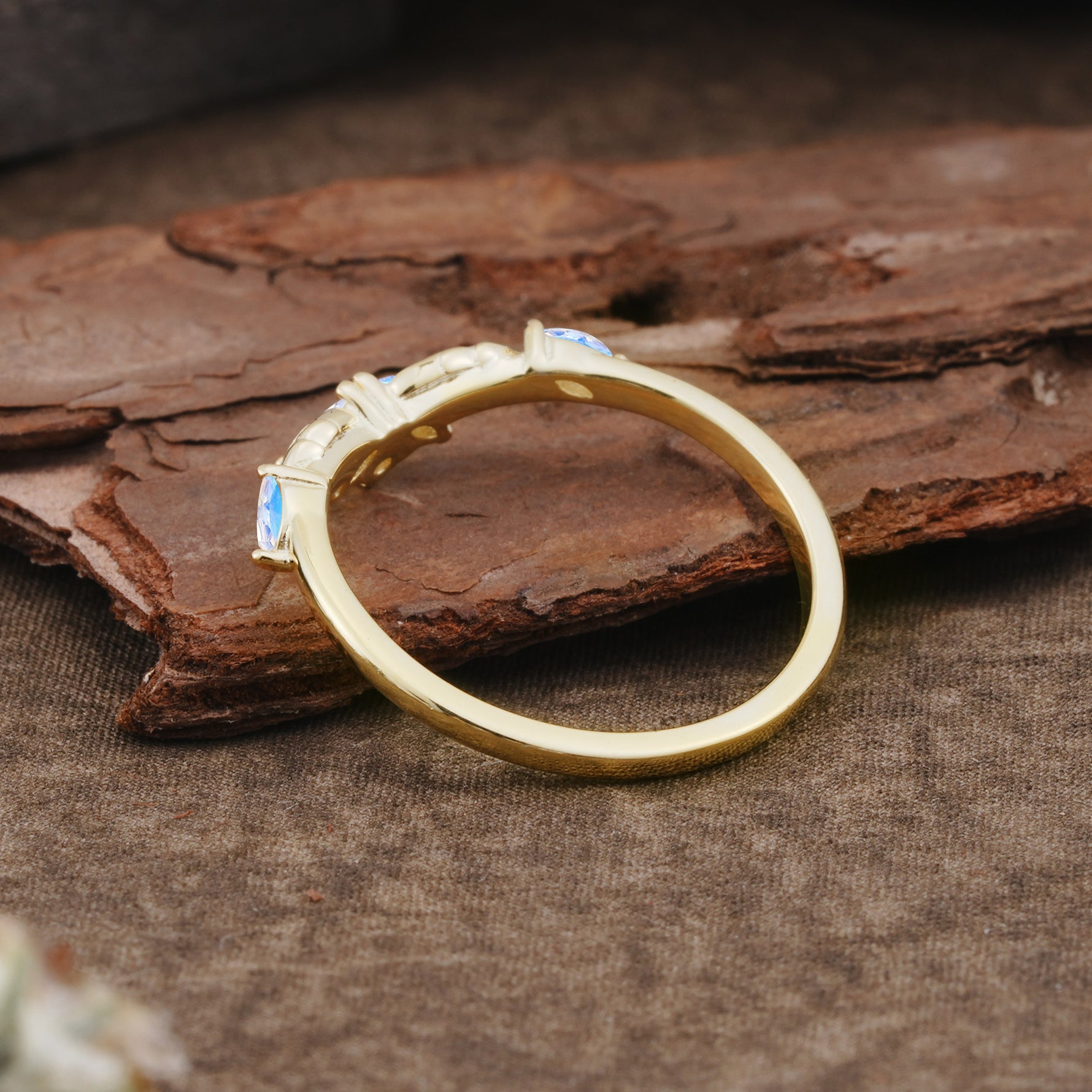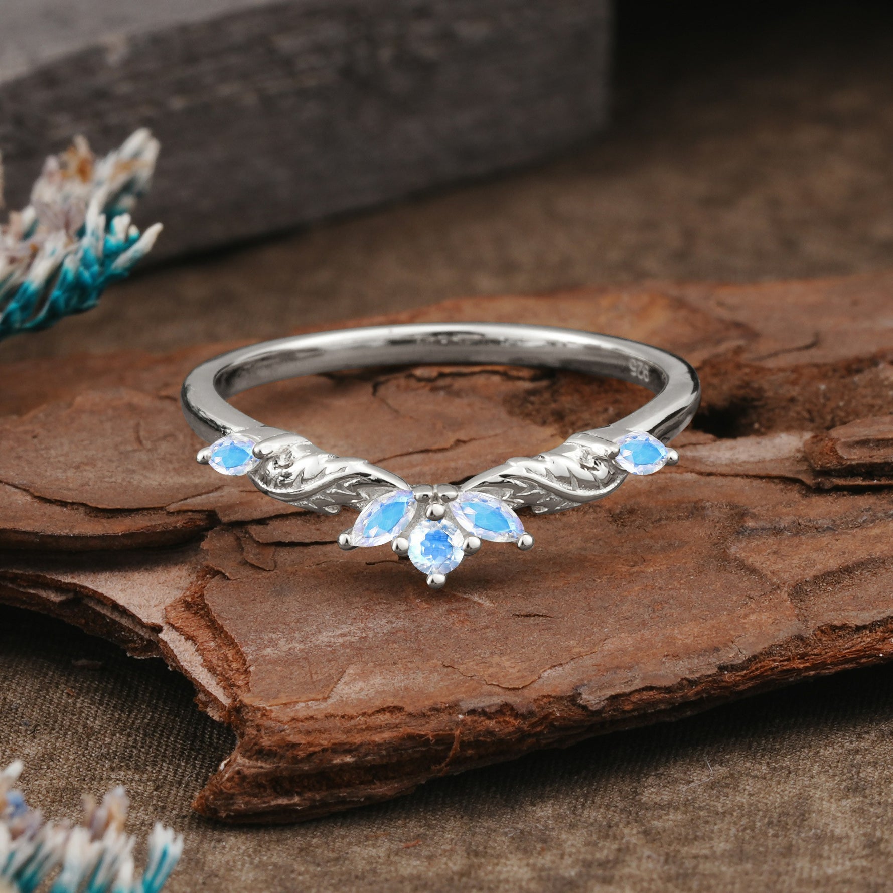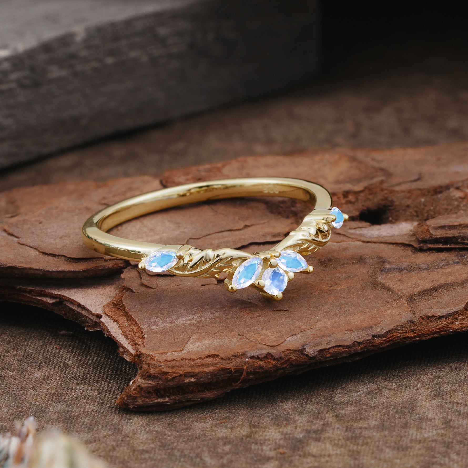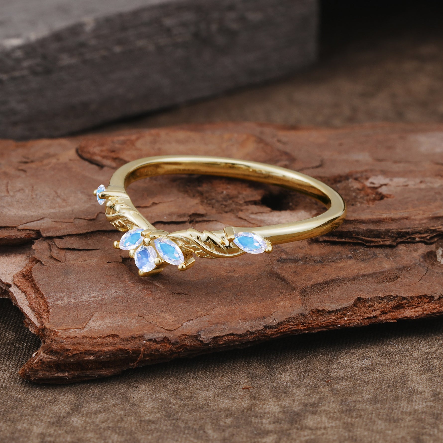 Unique Marquise Cut Curved Moonstone Ring Wedding Band