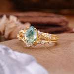 Nature-Inspired 4 Prong Pear-Cut Natural Moss Agate Ring Set