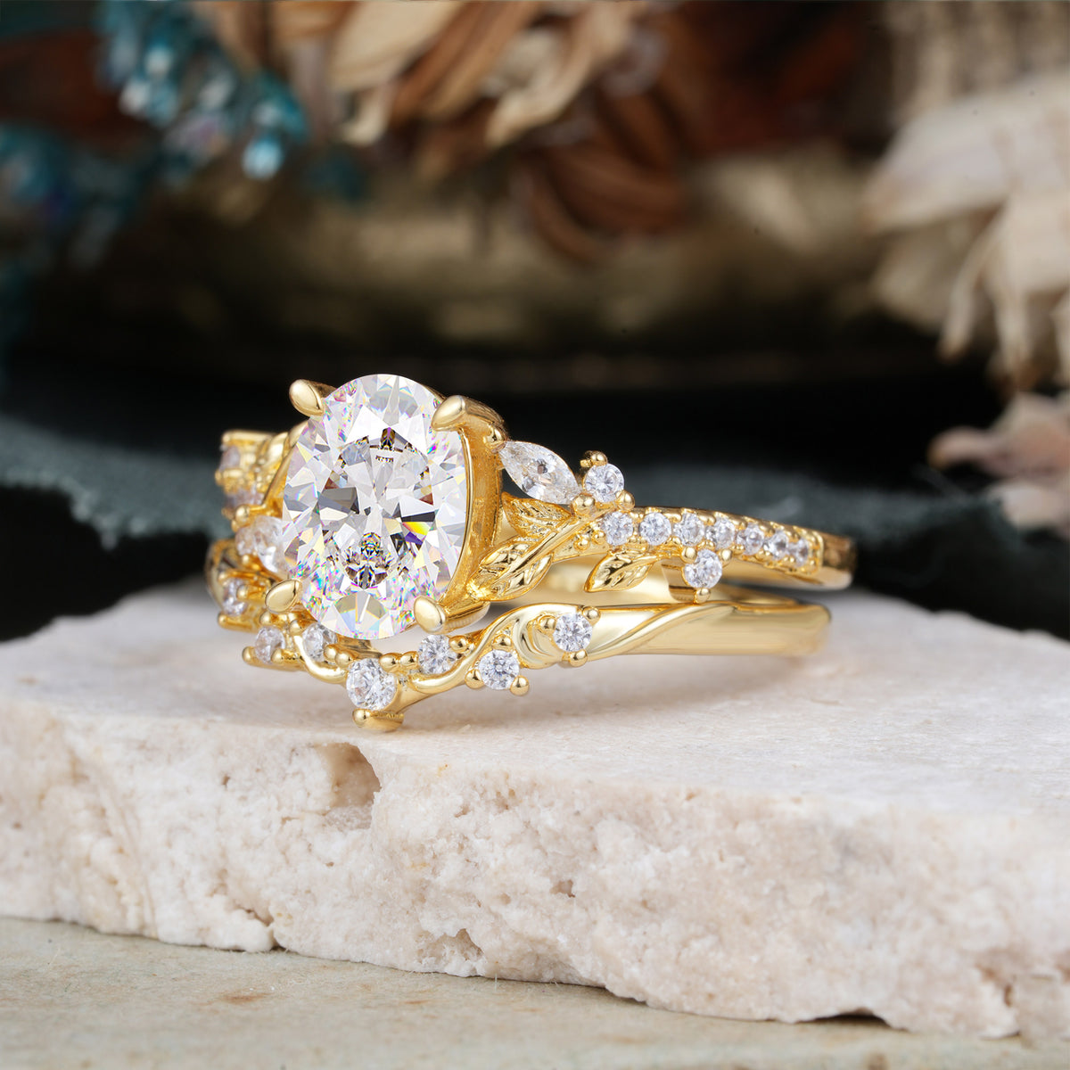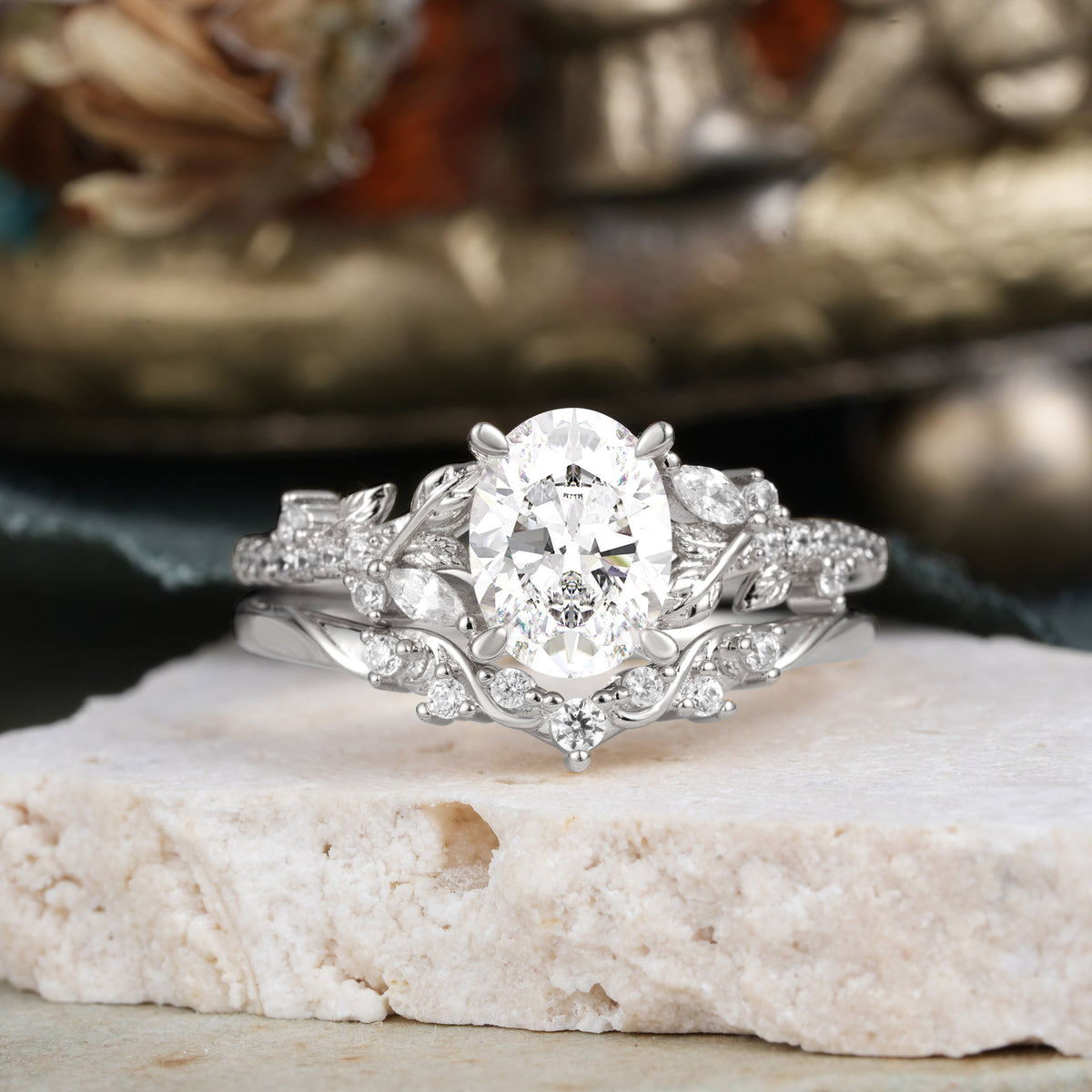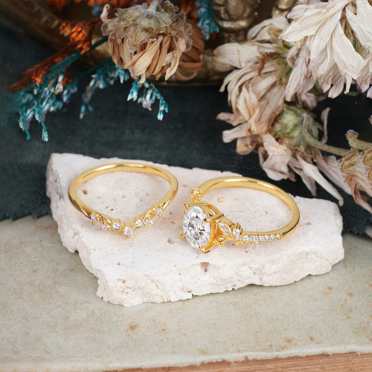 Vintage 4-Prong Oval-Cut Moissanite Engagement Ring Set
