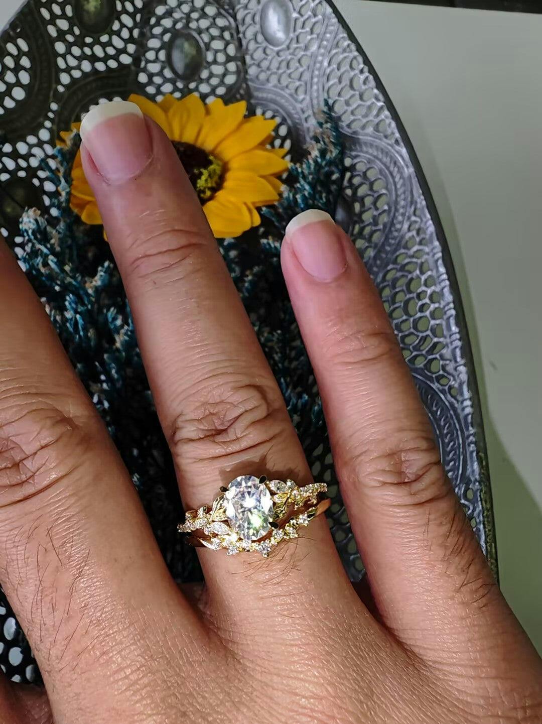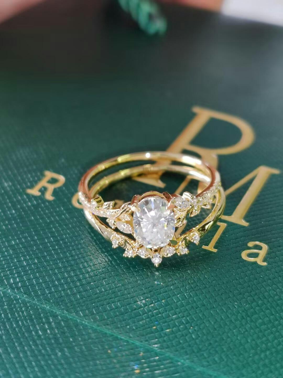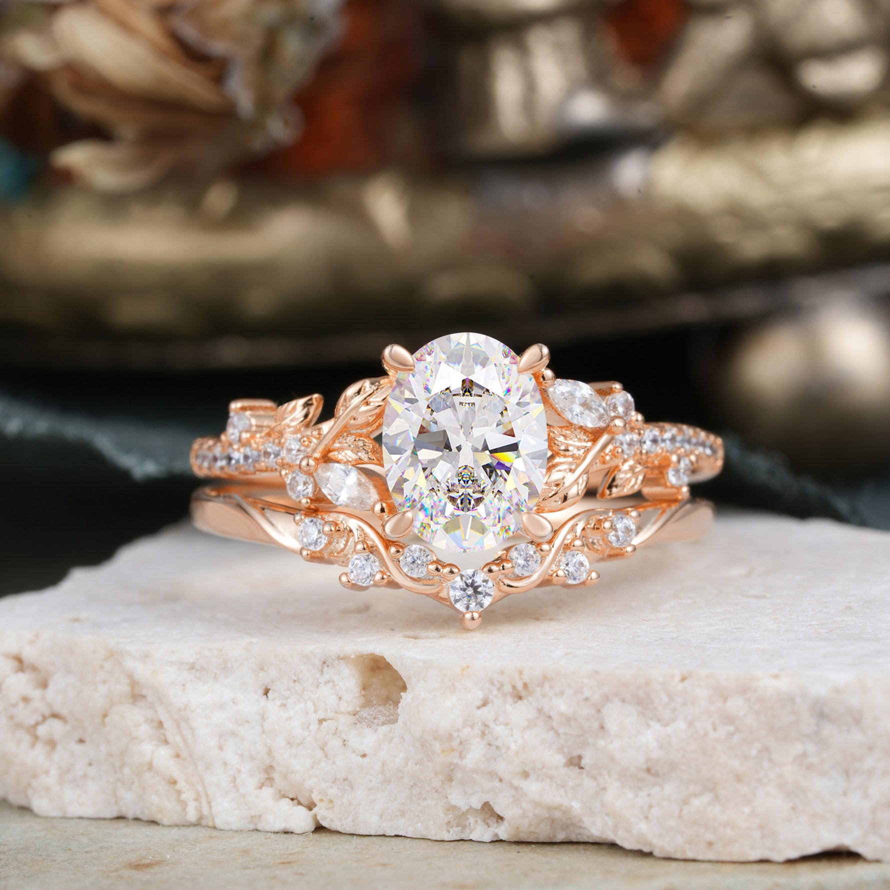 Vintage 4-Prong Oval-Cut Moissanite Engagement Ring Set