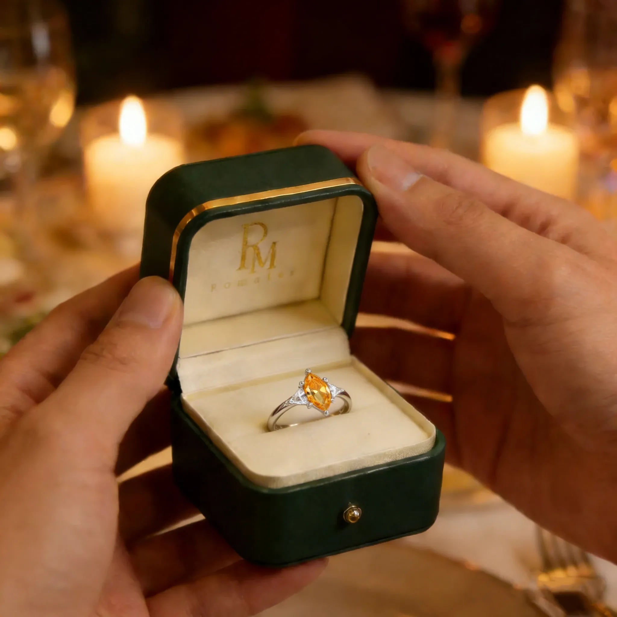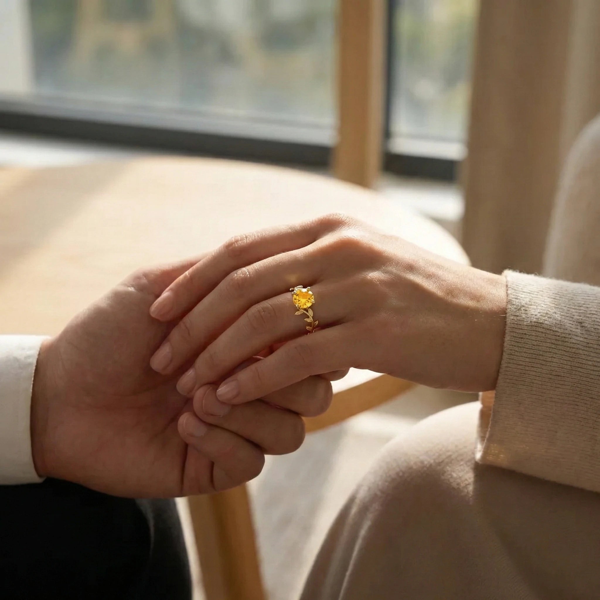 A citrine ring represents warmth, optimism, and shared happiness. Its golden glow offers a meaningful and uplifting alternative for commitment-focused jewelry.