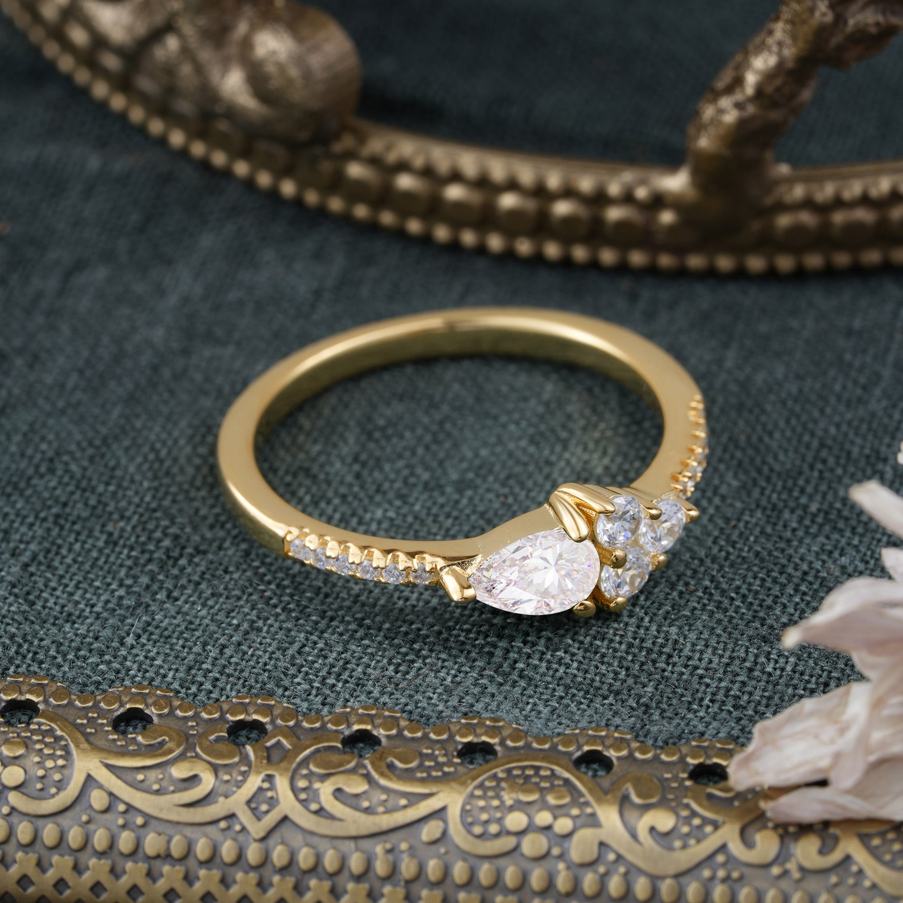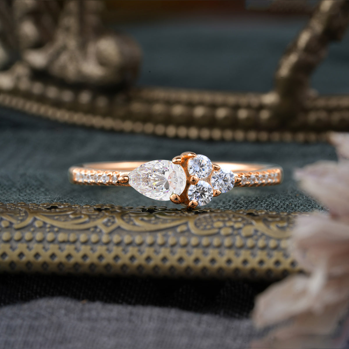 Pear Shaped Moissanite Three Round Stone Engagement Ring