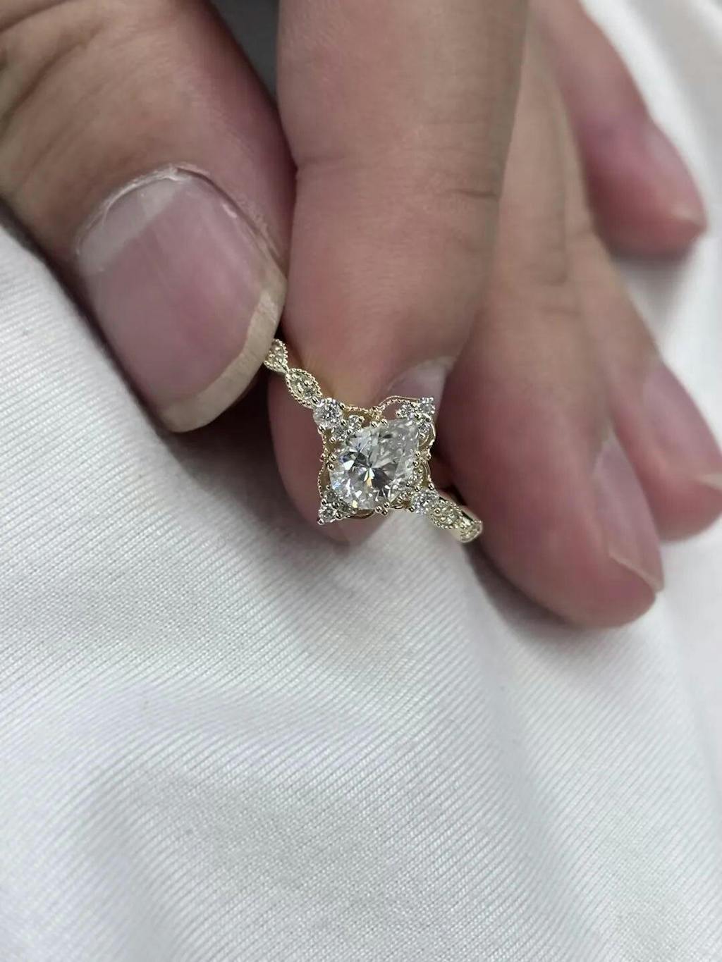 Antique Pear-Cut Moissanite Engagement Ring