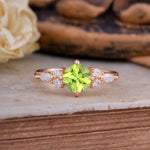 A peridot ring symbolizes renewal, balance, and positive energy, making it a meaningful alternative for engagement or promise rings with a fresh, vibrant green touch.