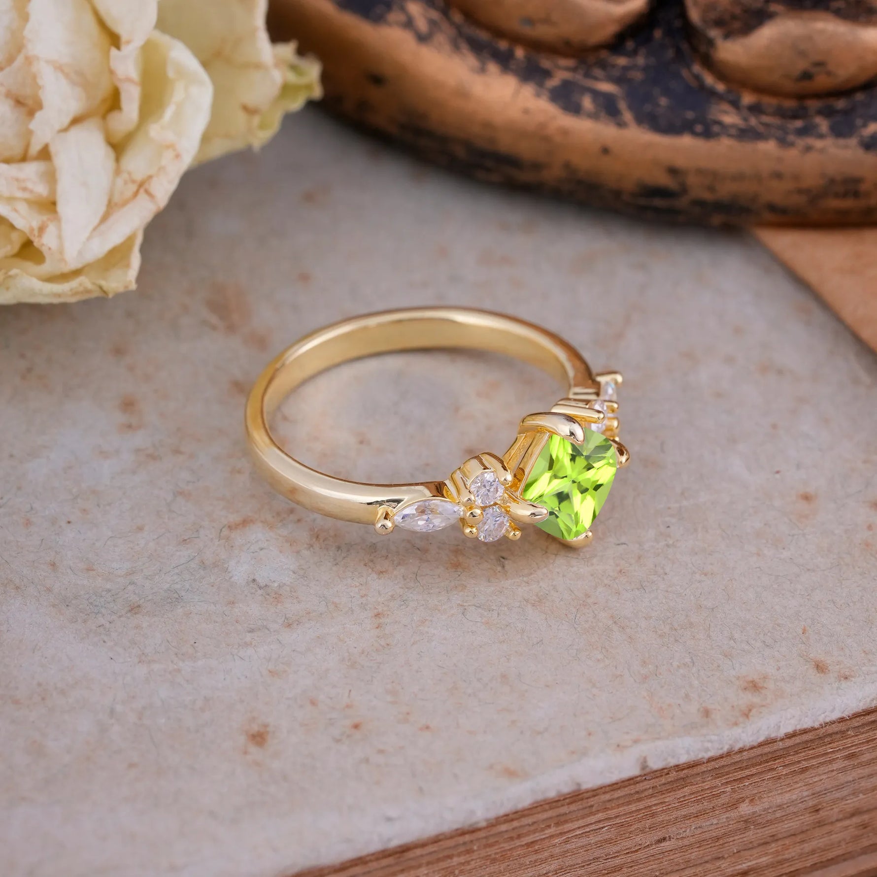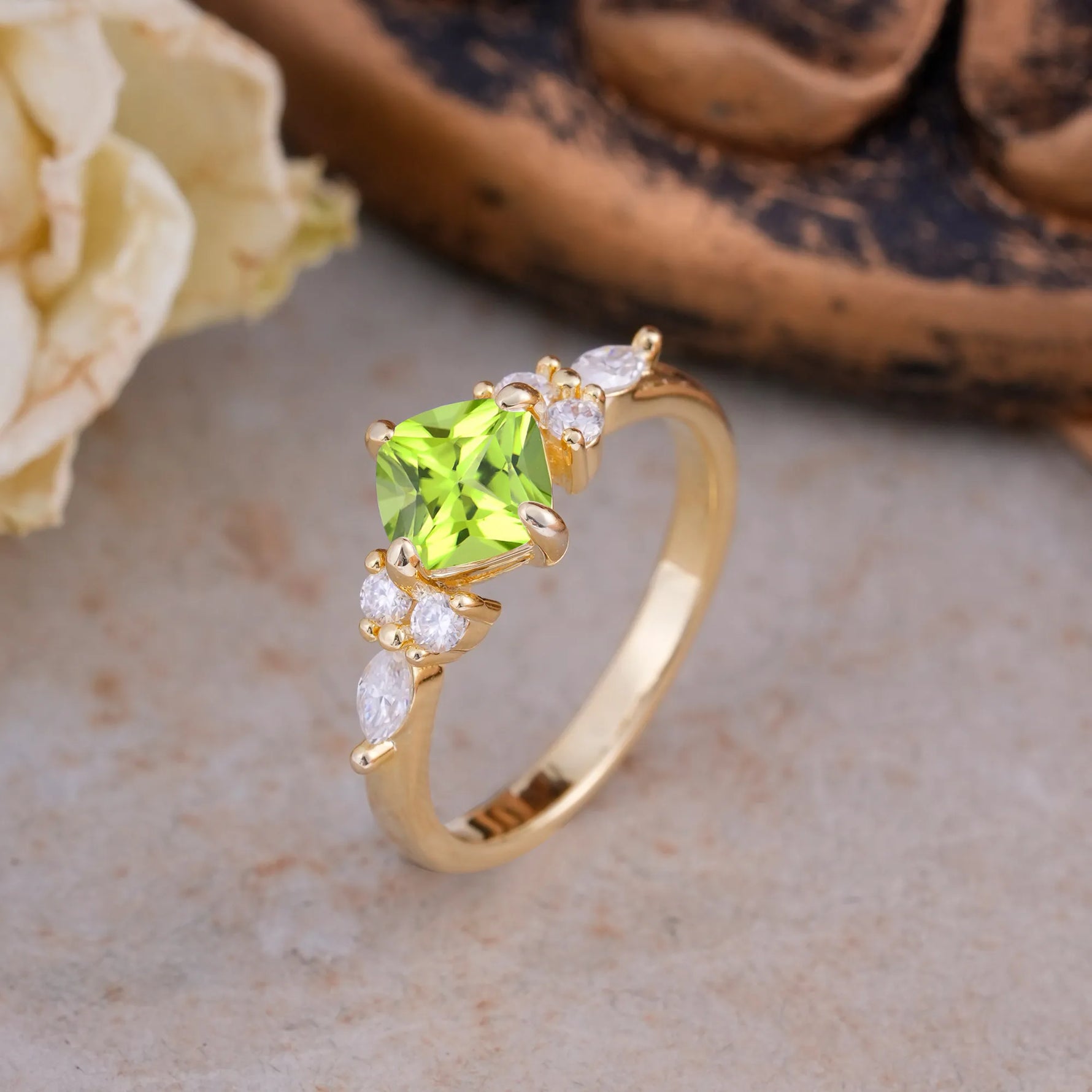Peridot rings can be worn alone for subtle charm or stacked with other rings for a modern, playful look. Its lively green color adds freshness and individuality to any jewelry ensemble.