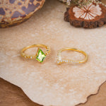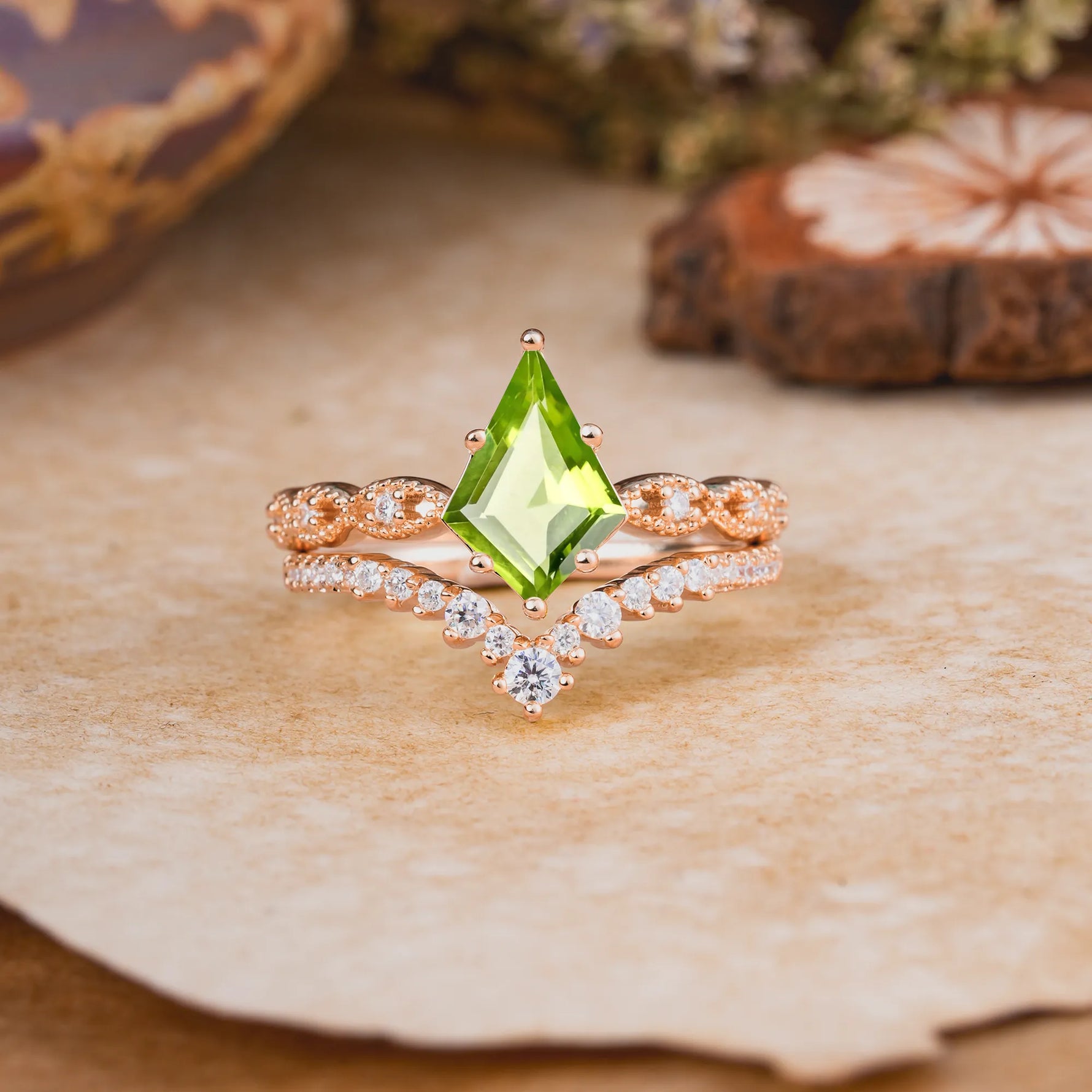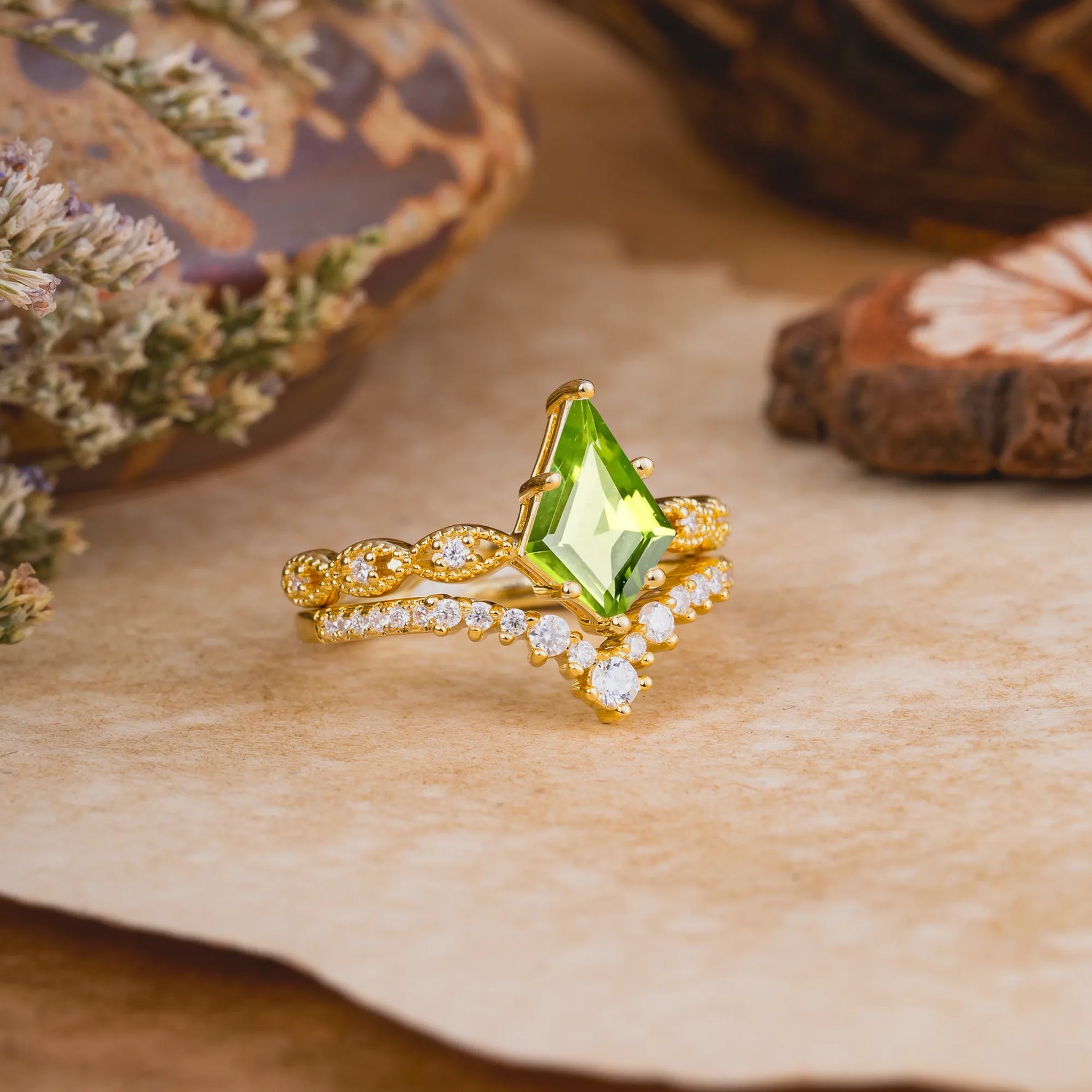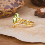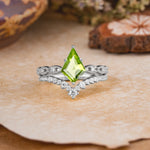 Luxury Vintage 6-Prong Kite-Cut Peridot Engagement Ring Set