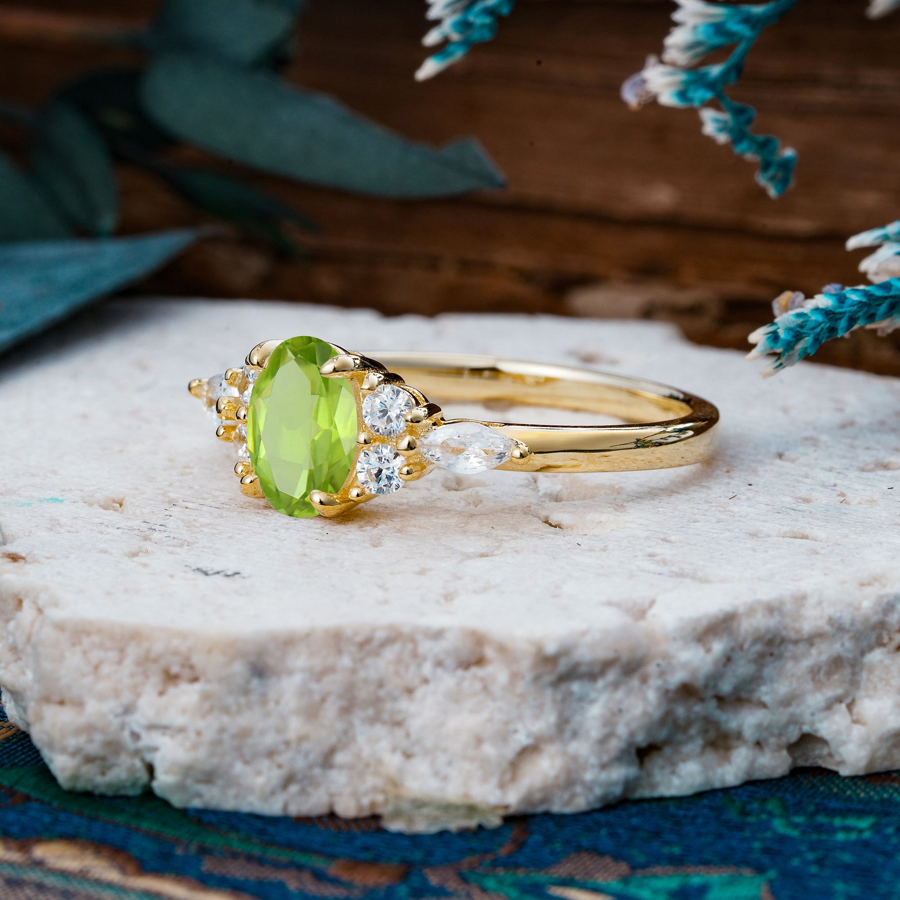 Sophisticated 4-Prong Oval Cut Peridot Engagement Ring