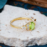 A peridot ring symbolizes renewal, balance, and positive energy, making it a meaningful alternative for engagement or promise rings with a fresh, vibrant green touch.