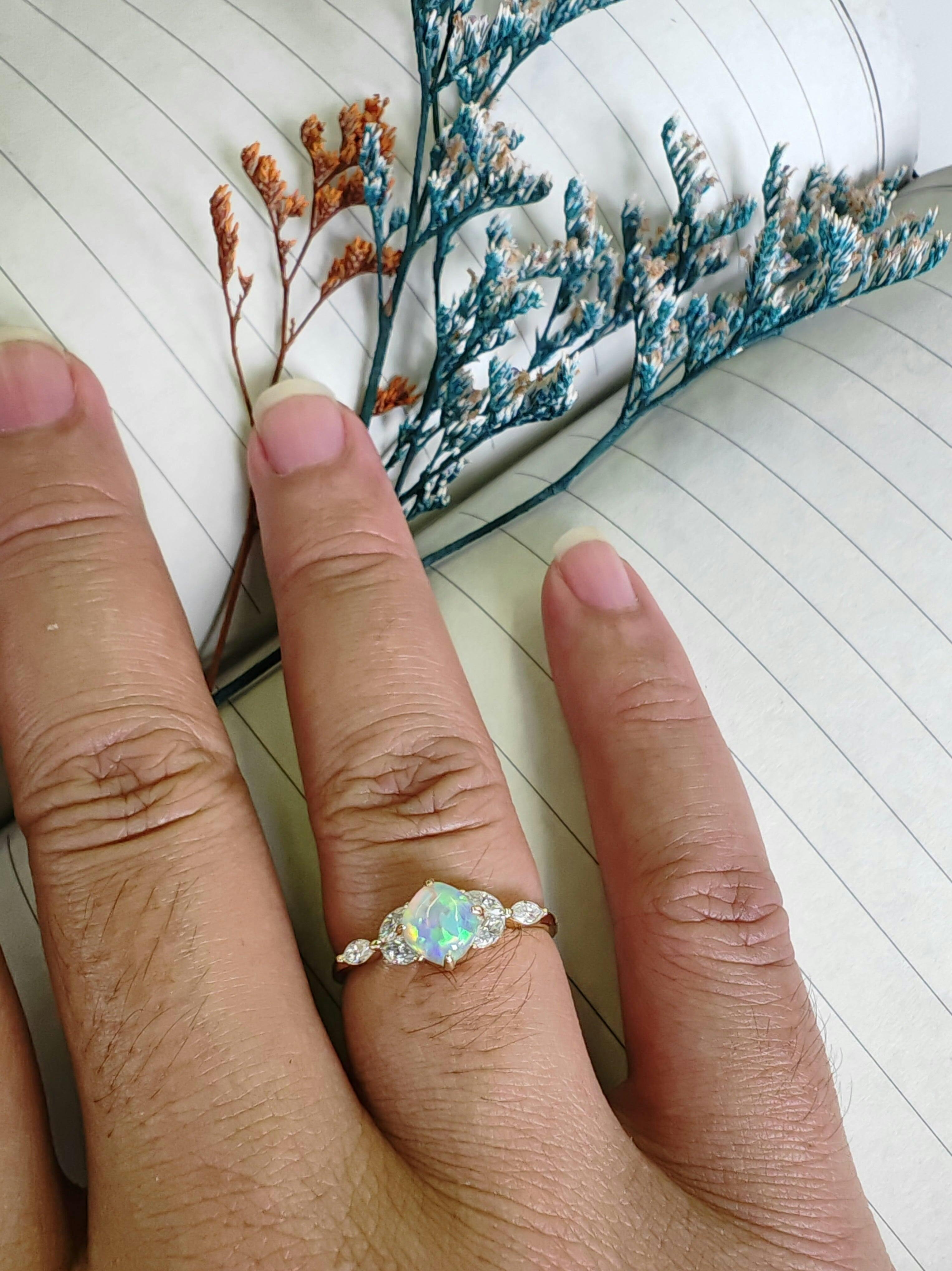 Opal rings make thoughtful gifts for birthdays, anniversaries, or milestones. Its vibrant play-of-color represents purity, faith, and heartfelt intentions.