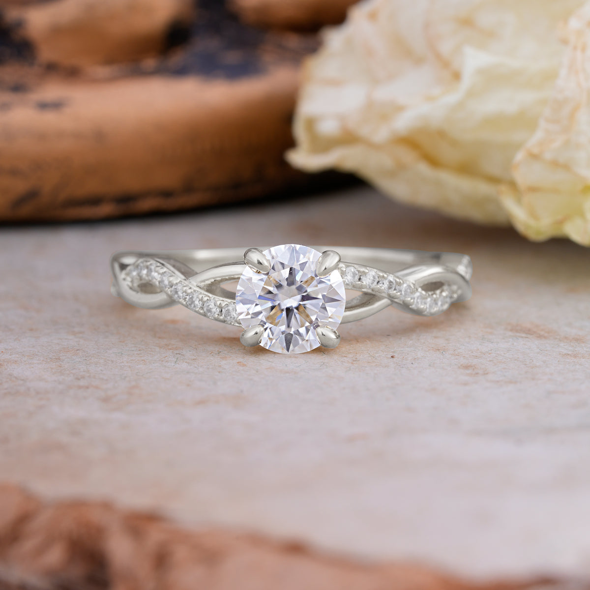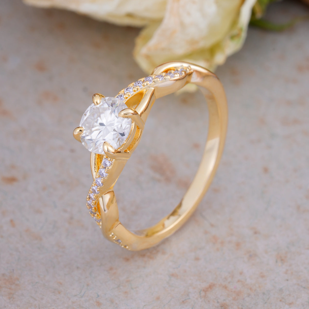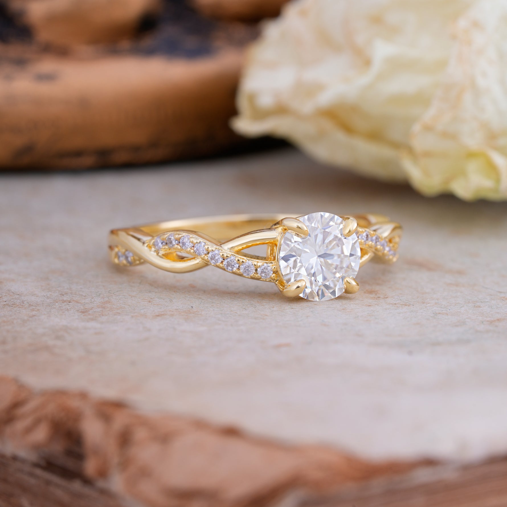 Twisted Vine Rose Gold Moissanite Engagement Ring with Round Cut