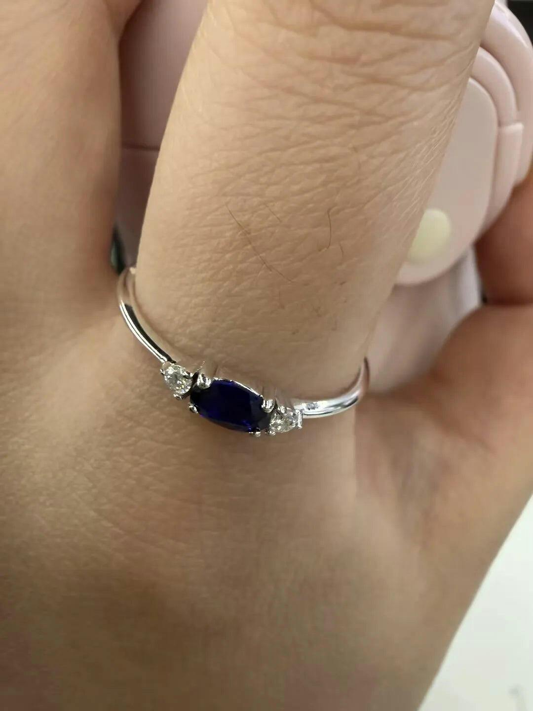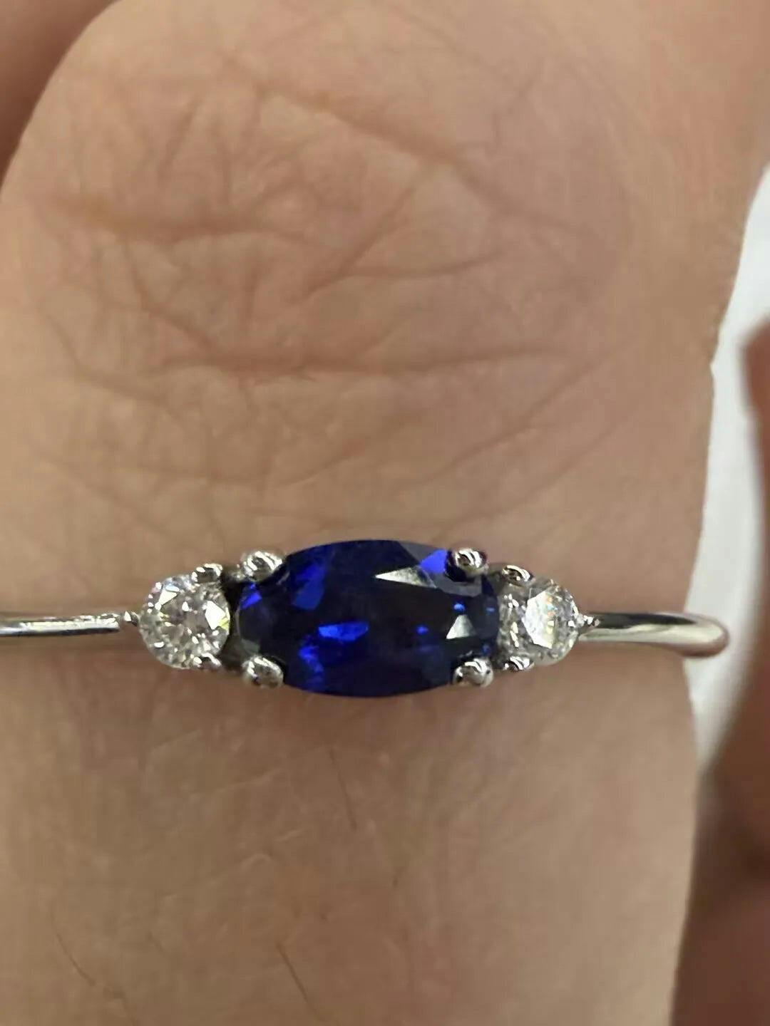 Round & Oval Cut Sapphire Ring Timeless Three Stones Wedding Band