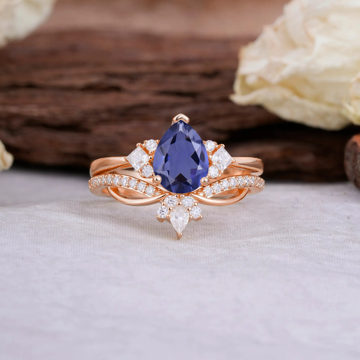Fashion-Forward Luxury Pear-Cut Tanzanite Engagement Ring Set