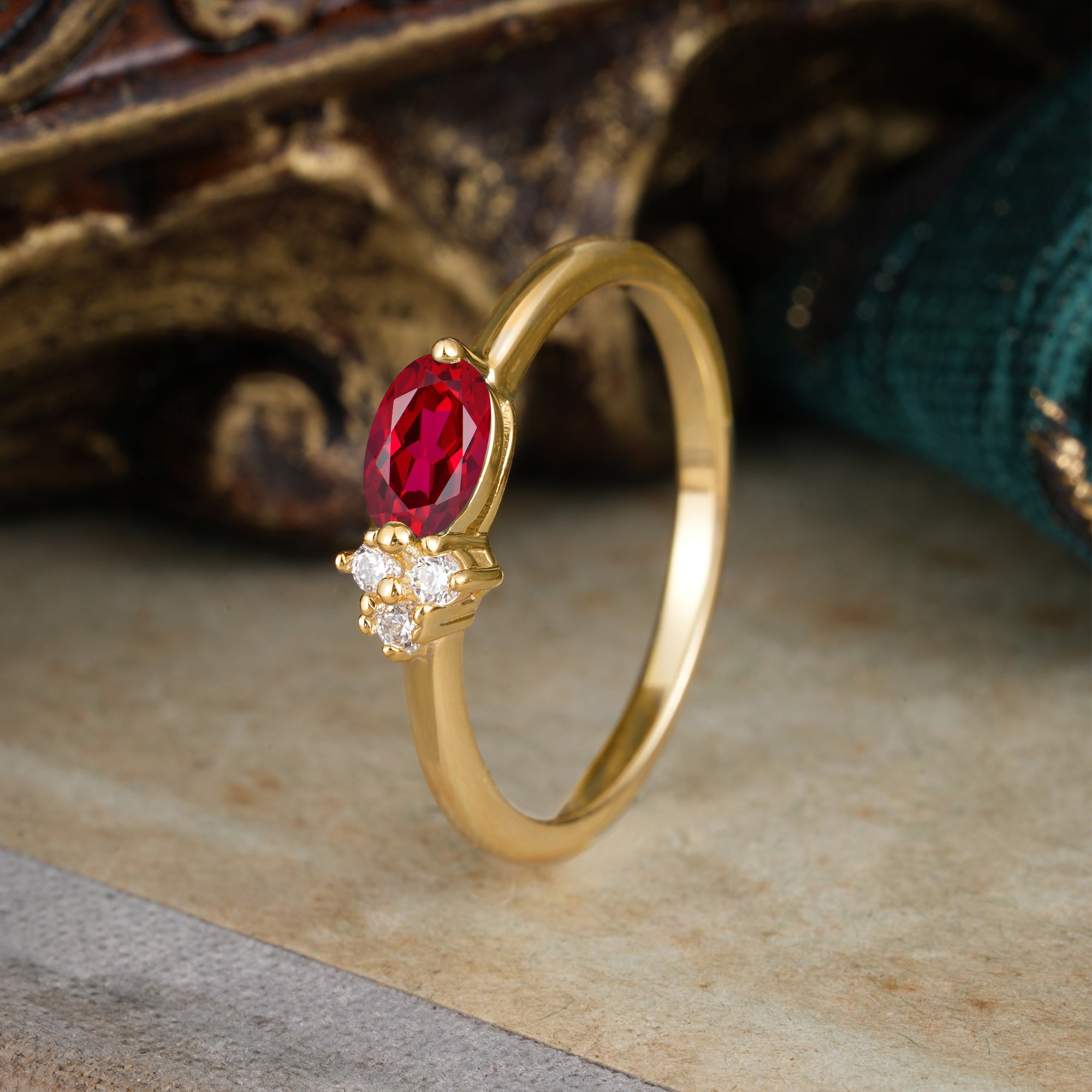 0.5ct Oval Cut Ruby Ring with Side Stones for Her