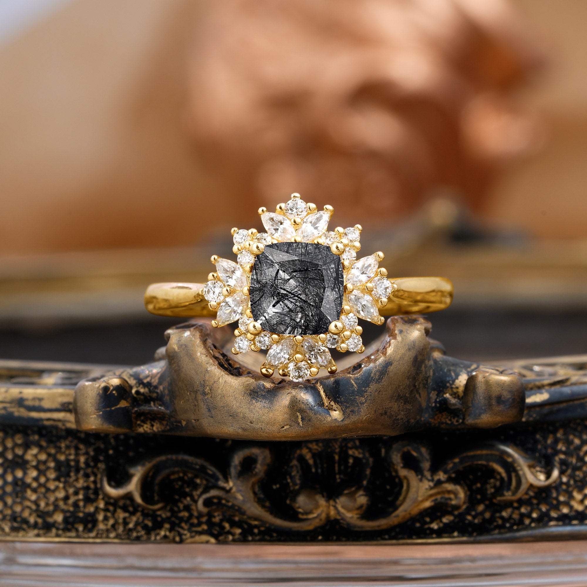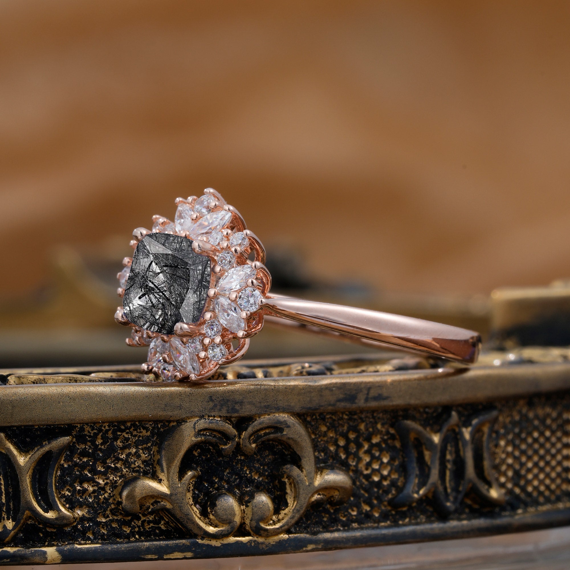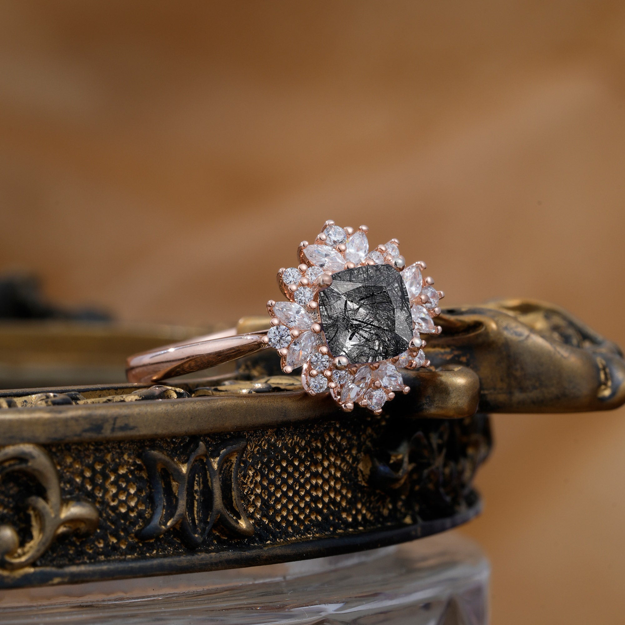 | Stone Material: Black Rutilated Quartz | Stone Material: Moissanite |