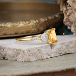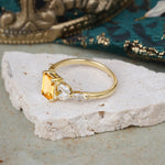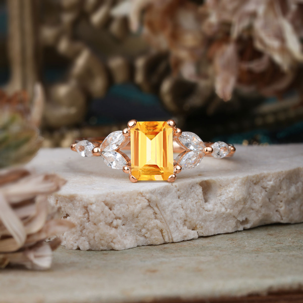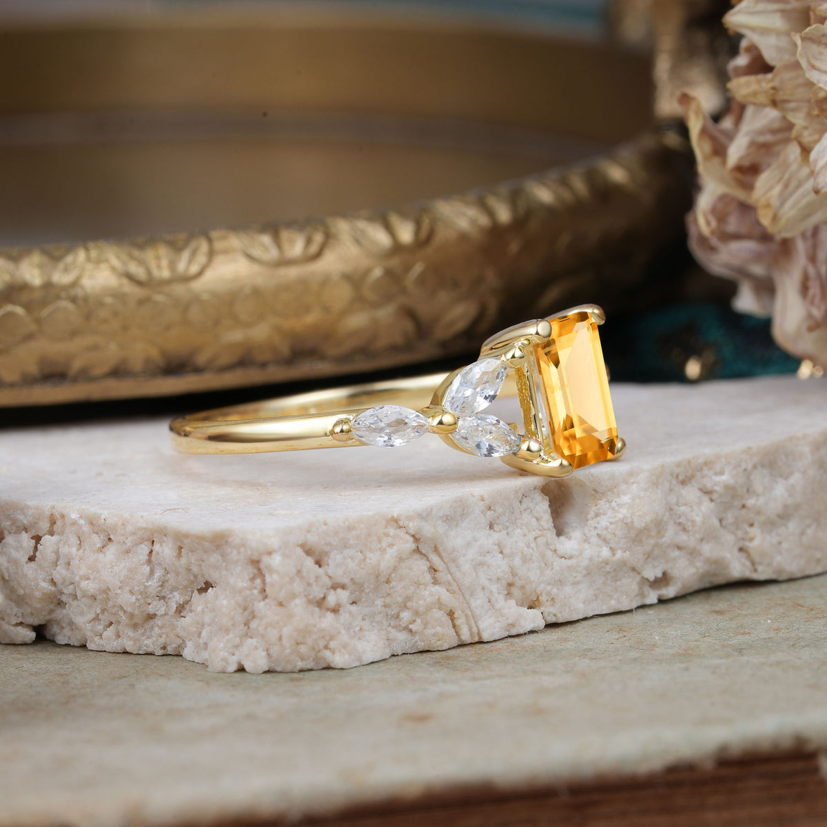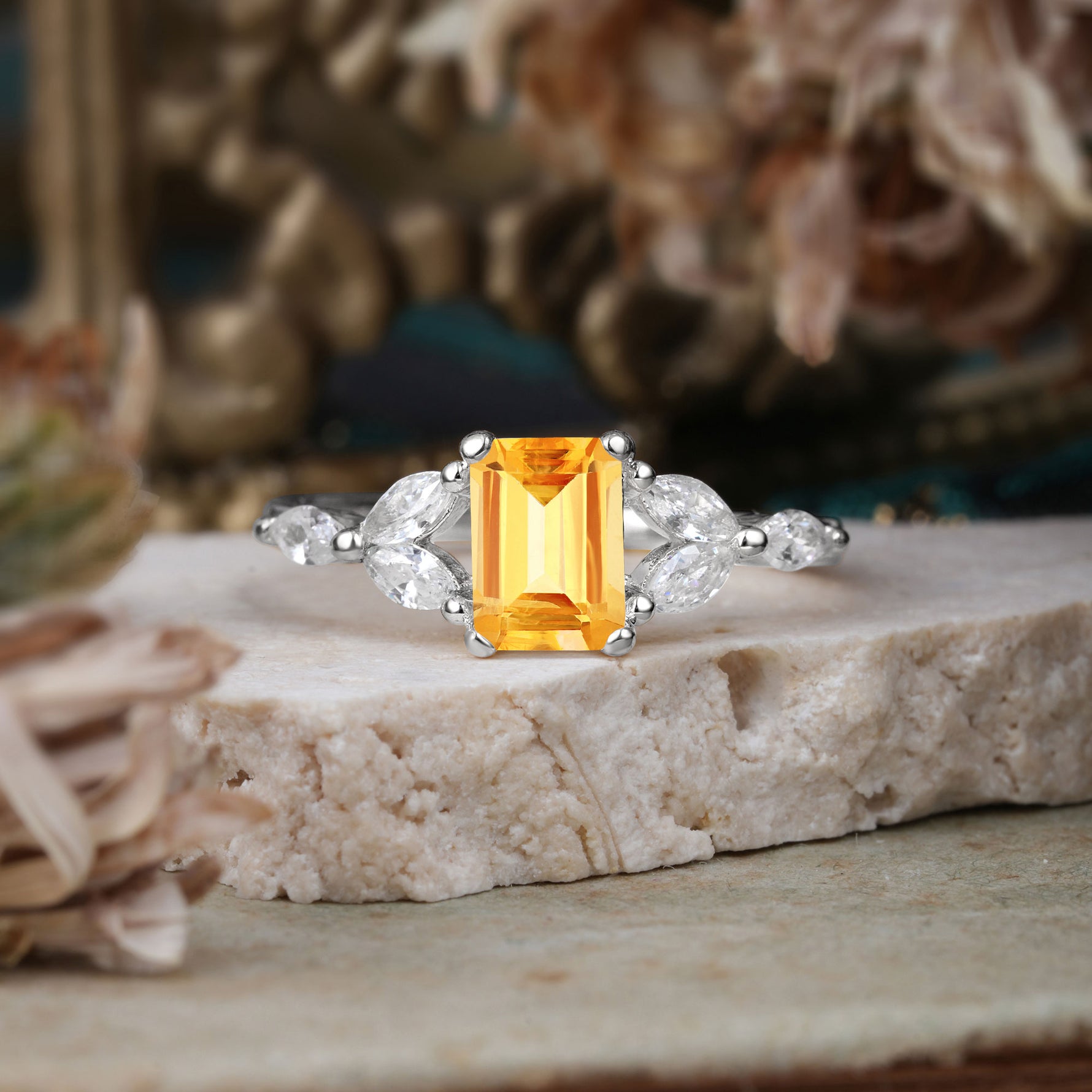 1 Carat 4 Prong Emerald Cut Citrine Ring Marquise Side Stone Engagement Ring