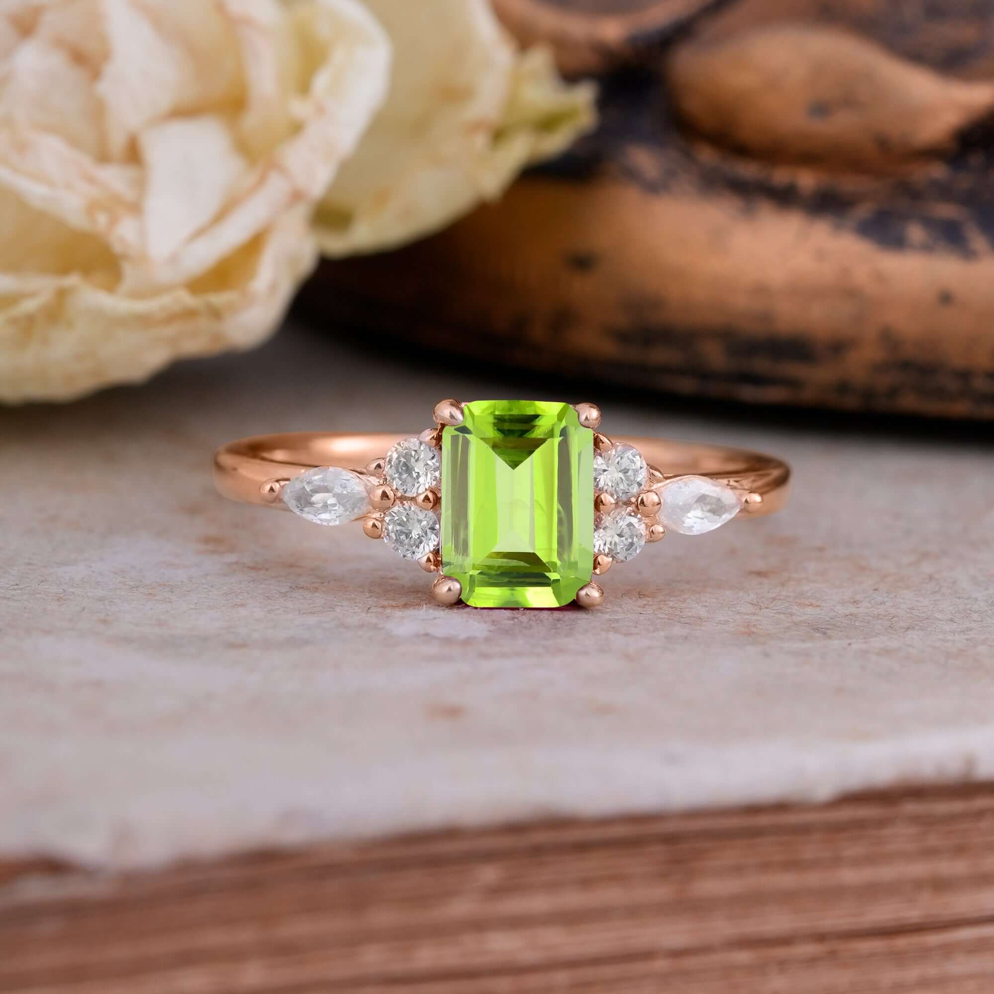 | Stone Material: Peridot | Stone Material: Moissanite |