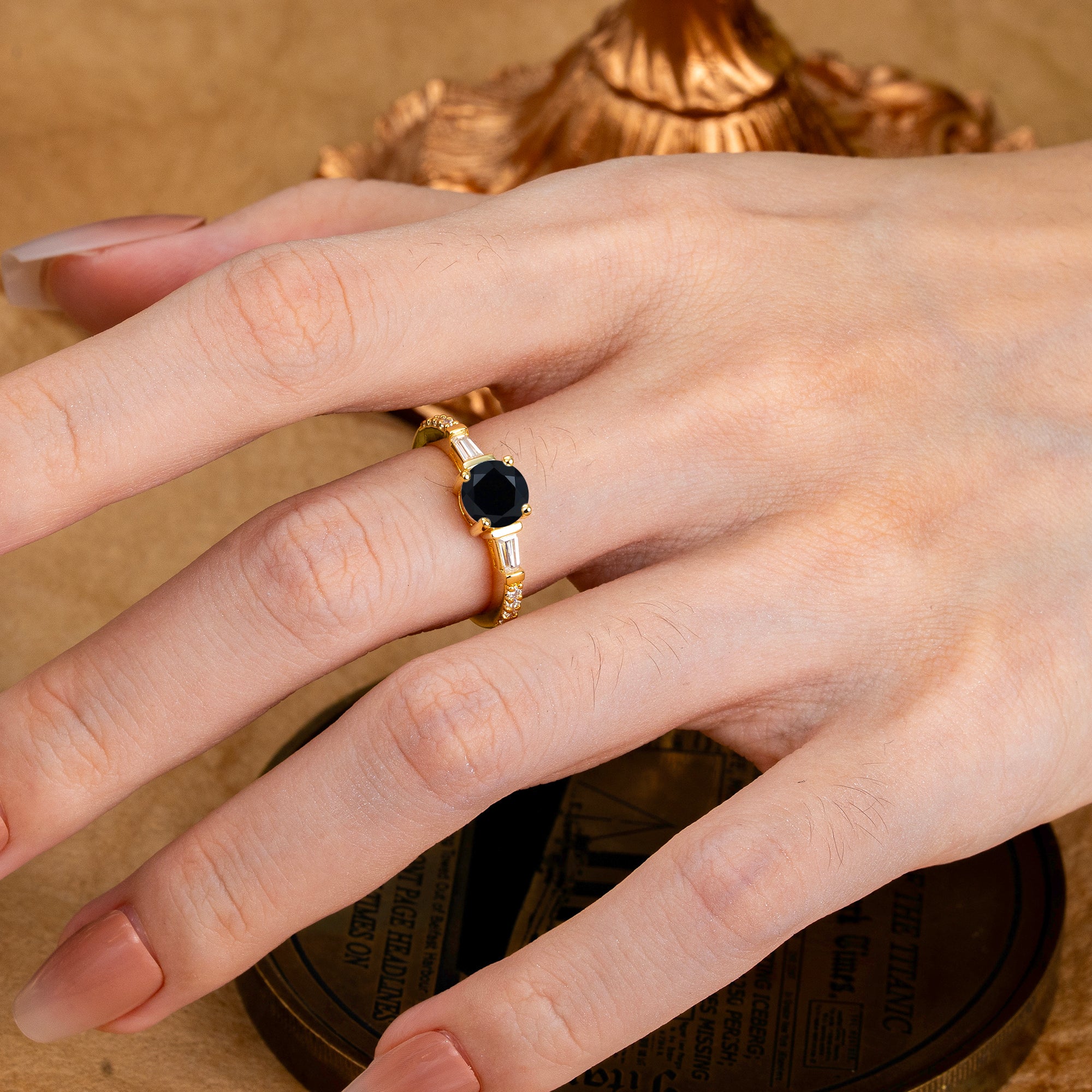 1 Carat Black Onyx Engagement Ring Side Stone Promise Ring