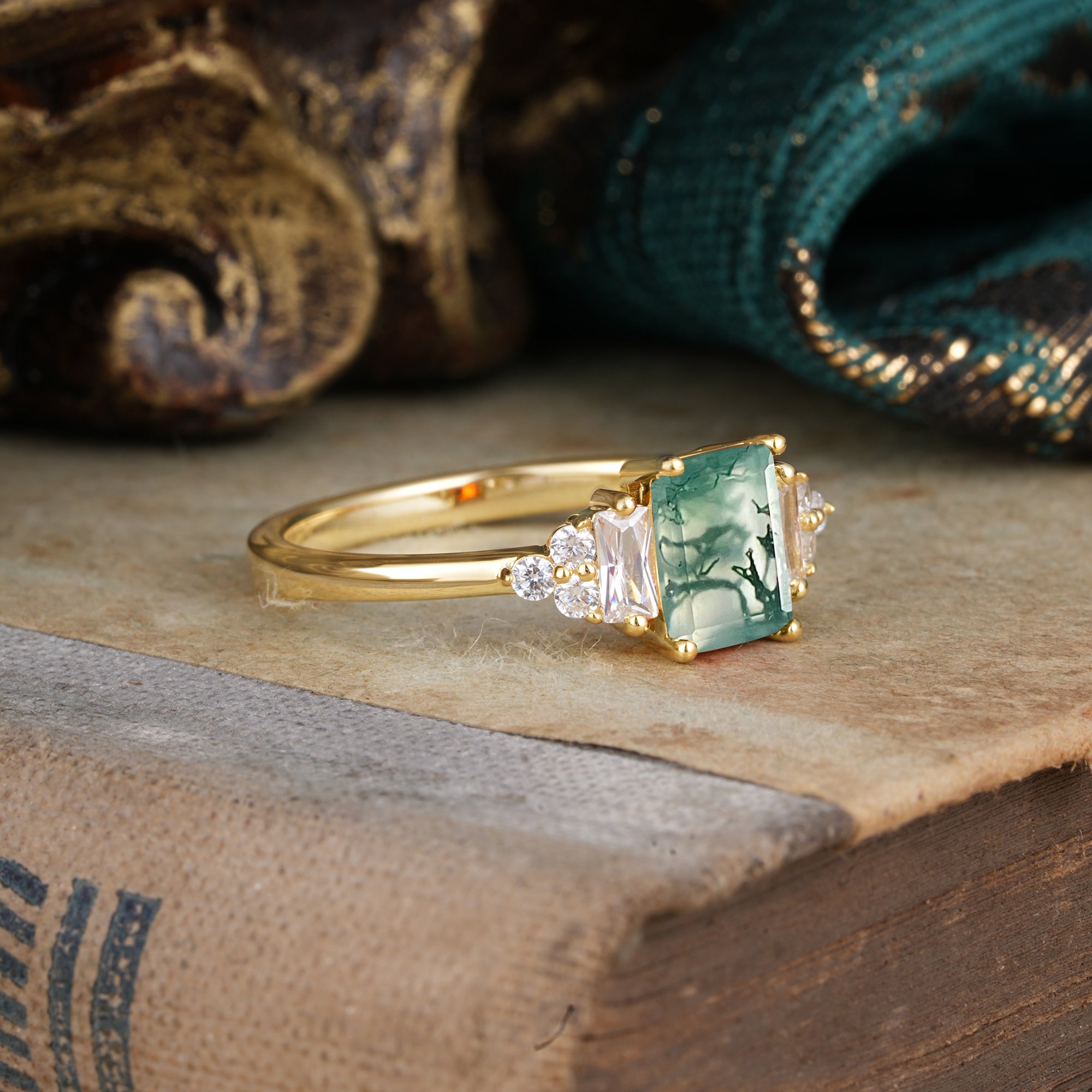 | Stone Material: Moss Agate | Stone Material: Moissanite |